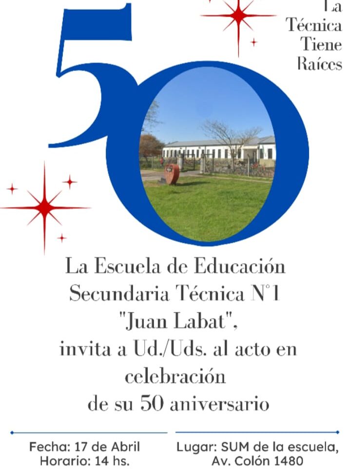 La Escuela Técnica Nro 1 «Juan Labat» cumple sus 50 años, y está preparando un festejo muy atractivo para el [...] -