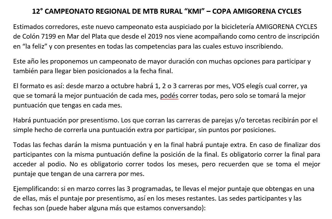 12º Campeonato de MTB RURAL – Copa Amigorena Cycles / Informe de KMI