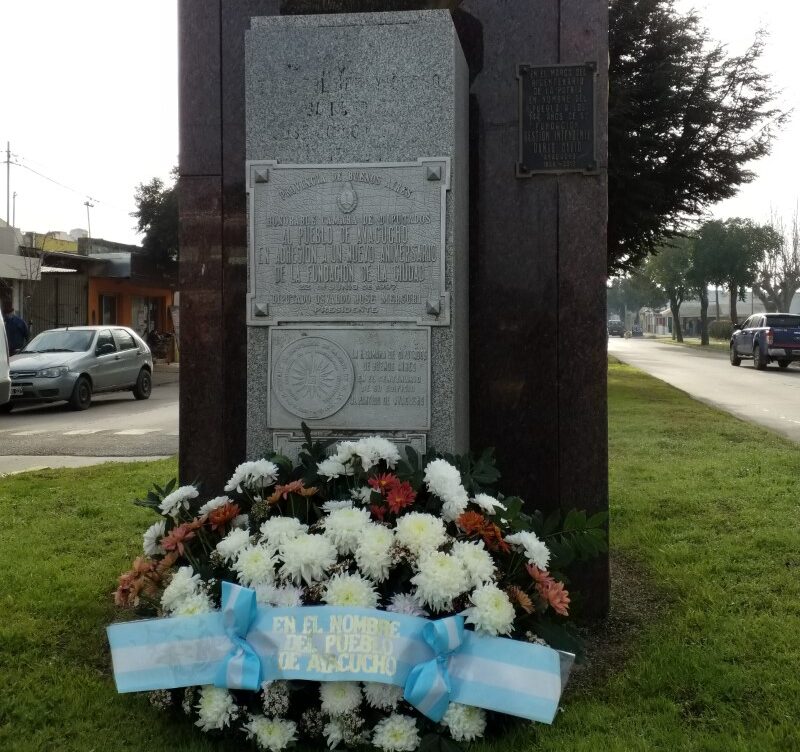 En el marco del 155 aniversario de la fundación de Ayacucho, y en un sencillo acto, esta mañana el Intendente Municipal Lic. Emilio Cordonnier, junto a la Presidente del Concejo Deliberante, Miriam Ferrari; los Concejales Emilia Souza y Marcela Guisande; la presidente del Consejo Escolar, Florencia Aguiar; y el acompañamiento especial del Presidente de la Fiesta Nacional del Ternero y Día de la Yerra, Alberto Volontín; y la actual Reina Agustina Desimone y la Segunda Princesa Natalia Rodríguez; colocaron una ofrenda floral en el busto que recuerda al fundador de Ayacucho, José Zoilo Miguens, dado que por la pandemia de covid-19 aún no pueden realizarse actos con concurrencia de público.