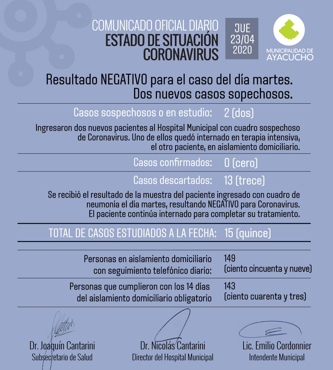 La Municipalidad de Ayacucho a través del Area de Salud y el Hospital Municipal «Dr. Pedro Solanet», da cuenta de la situación en nuestra ciudad en el marco de la pandemia mundial por el Covid […]