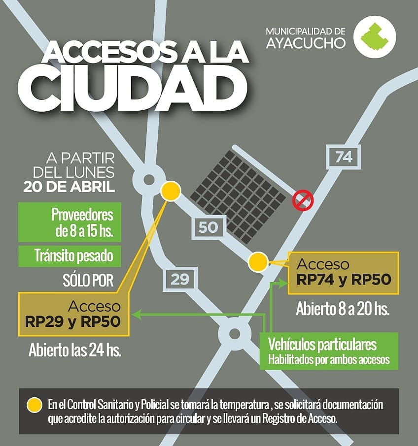 La Municipalidad de Ayacucho informa que a partir del lunes 20 de abril, el acceso de Rutas Nº 29 y Nº 50, funcionará las 24 horas. Además, el transporte pesado podrá ingresar únicamente a la […]