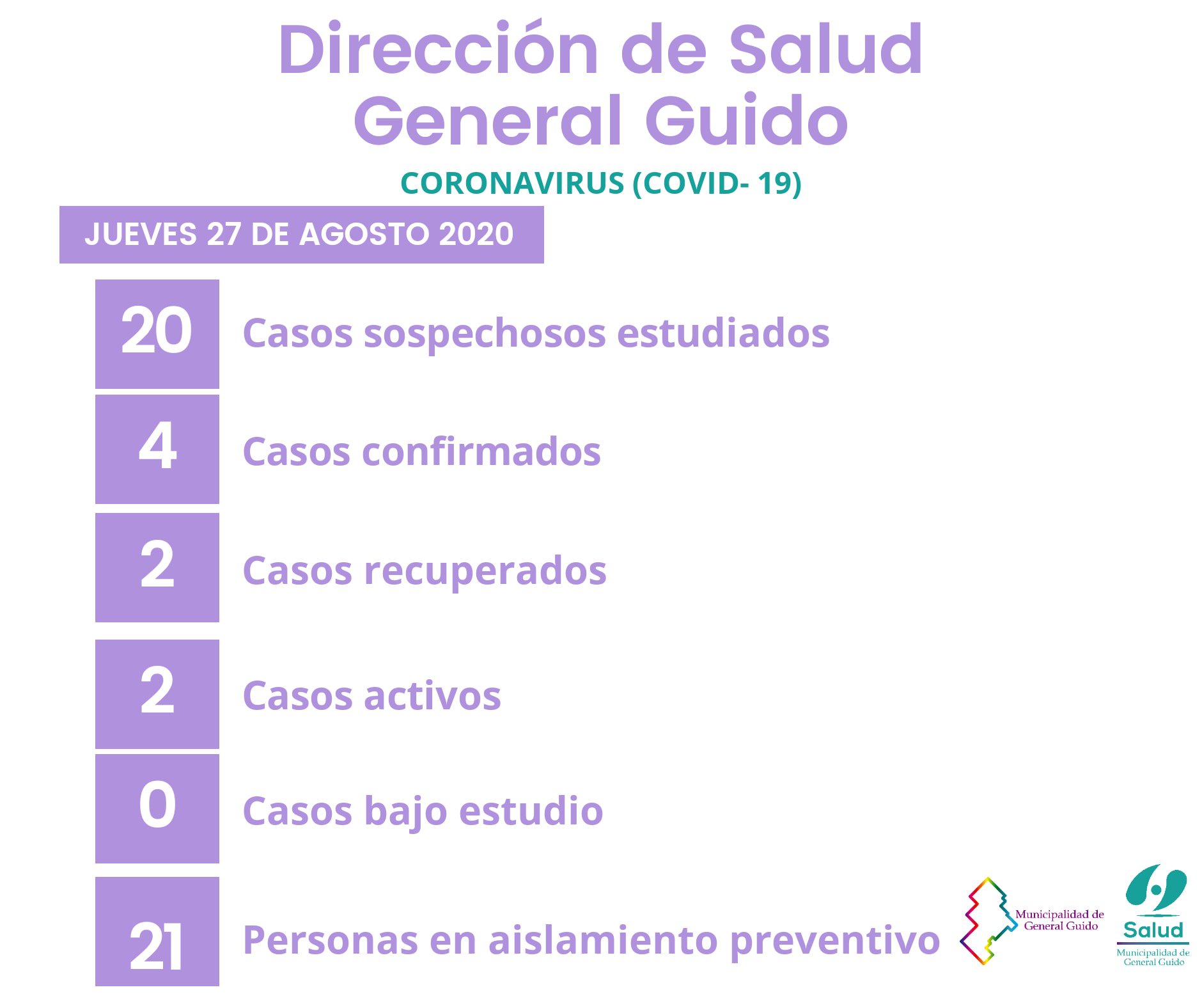 La Dirección de Salud de General Guido informa que, los dos hisopados preventivos realizados en la localidad de Labardén, el día lunes 24 de agosto, arrojaron resultado negativo para Covid-19.