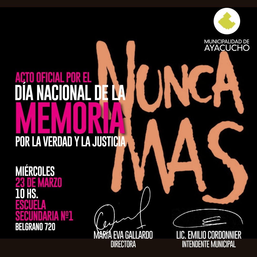 Este miércoles 23 de Marzo a las 10, en su sede de Belgrano 720, la Escuela de Educación Secundaria 1, ex – Nacional será sede del Acto Oficial por «Día de la Memoria, la Verdad […]