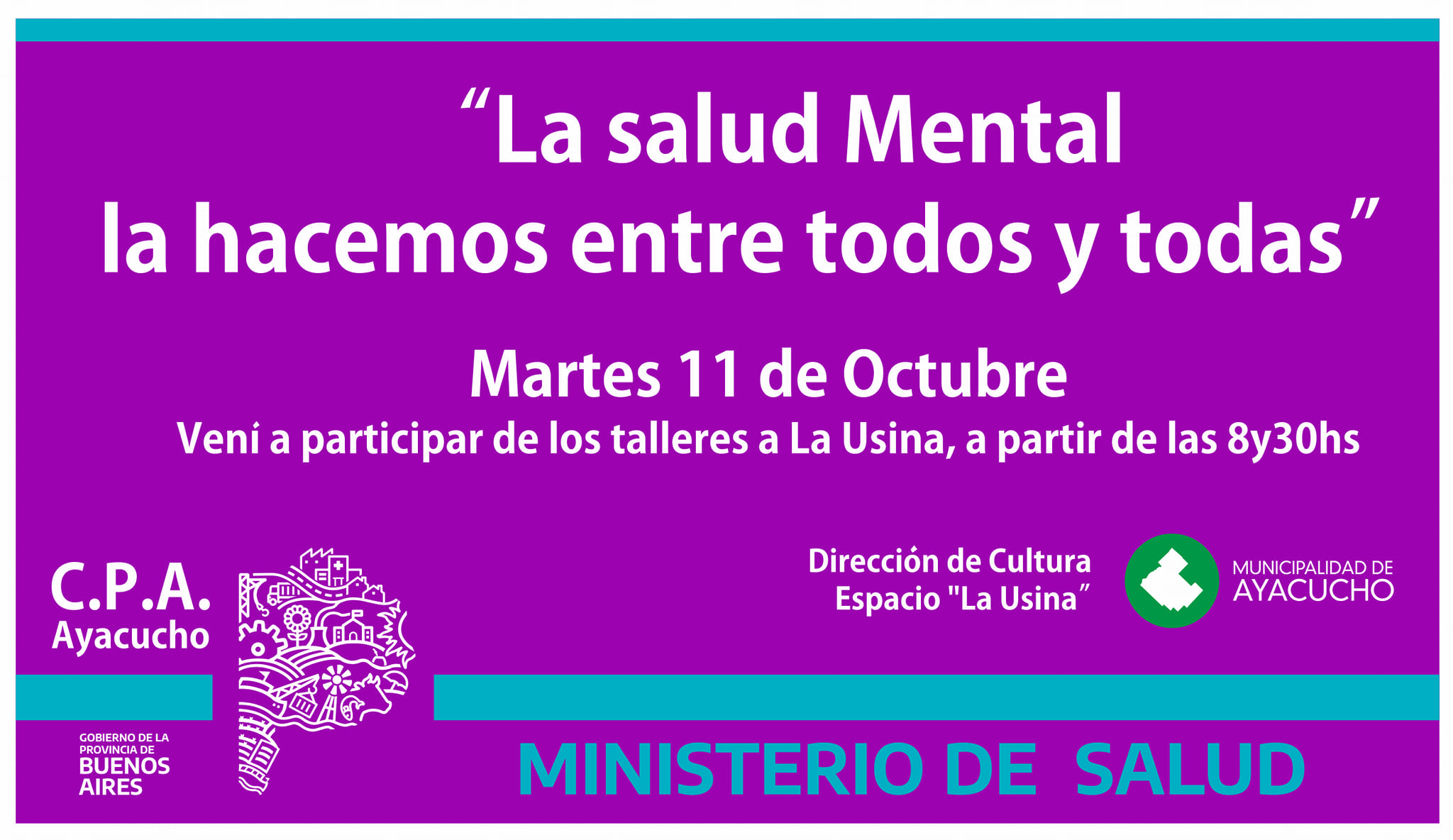 La Salud Mental, Dirección de Cultura y CPA Ayacucho los invita a los Talleres en el espacio La Usina el día Martes 11 de Octubre