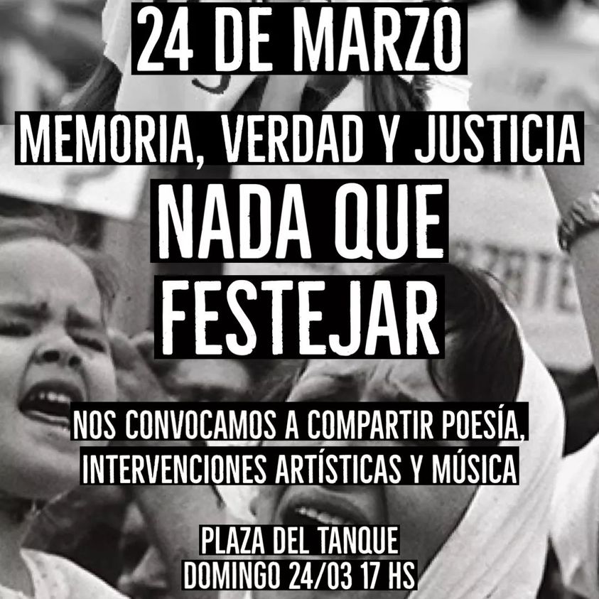 Este domingo 24 en la Plaza del Tanque Encuentro por la Memoria, la Verdad y la Justicia