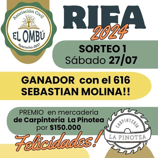 Tenemos al primer ganador de nuestra rifa anunciaba en sus redes el propio Establecimiento: Sebastián Molina, con el número 616! Se va el premio para Tandil, vendido por la familia Aneas!! Felicidades a todos… Se […]