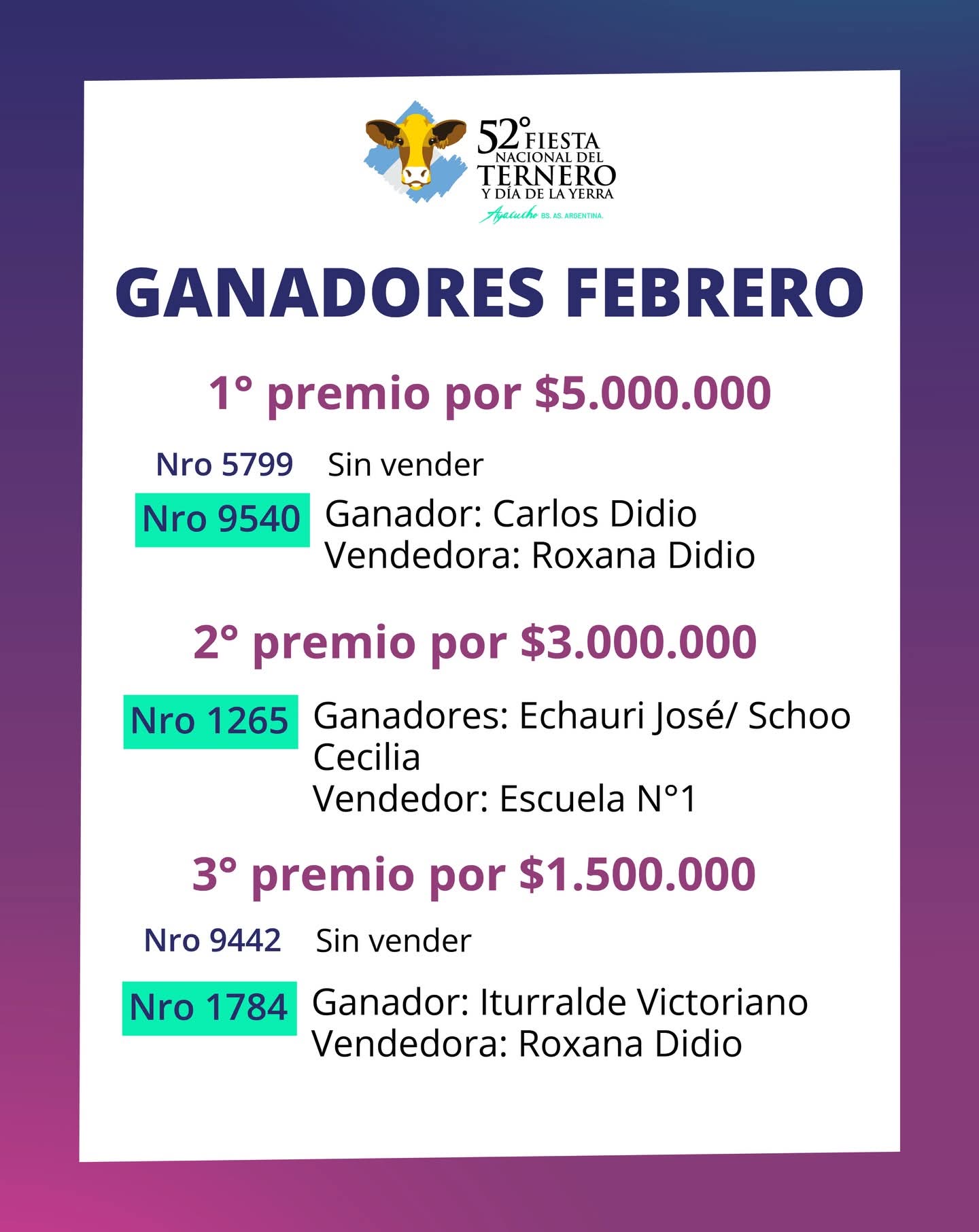 Rifa de la Fiesta del Ternero 2025 para la 52da edición / Ganadores del sorteo de Febrero