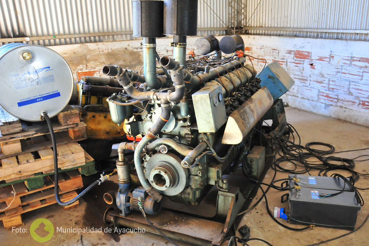 “El motor que teníamos anteriormente era un Deutz 5 cilindros que entregaba 80 KV de energía, mientras que el actual entrega 215 KV y el Hospital tiene una demanda máxima de 110 KV. Es un motor Koerting de barco, de 12 cilindros al cual se le reparó las bombas inyectoras hace poco. Era un motor que llegó a Ayacucho sin funcionar y personal de mantenimiento del Hospital hizo un tablero para automatizarlo donde si se llegara a cortar la energía, en un lapso de 8 segundos, se pone en marcha solo y comienza a generar energía”, explicó el técnico.