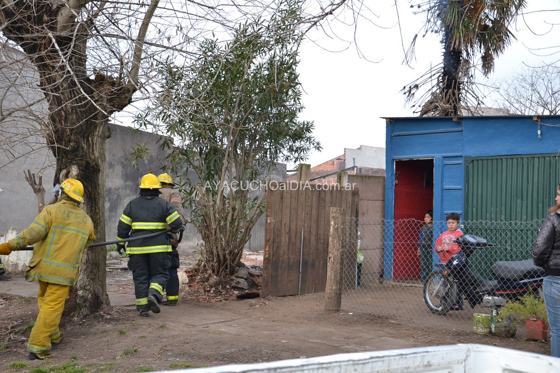 Un principio en una palmera, lindera a una casa, ubicada en 25 de Mayo a metros de Alsina, motivó el llamado de Bomberos Voluntarios este Domingo por la tarde, alrededor de las 16 horas. Allí estuvo Ayacuchoaldia.com.ar donde observamos la tarea desarrollada por los servidores públicos quienes inicialmente verificaron la situación y luego pasaron a enfriar la zona afectada.