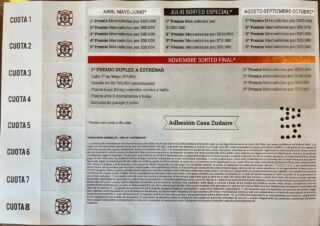 El valor total de la misma es de $ 6400.- pagaderos en cuotas de $ 800.- Serán en total 5000 boletas. Habrá un sorteo especial en Julio de $ 1.000.000.- como también sorteos mensuales desde abril.