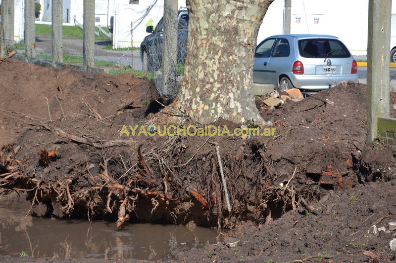 Pasar por el patio de la “Escuela Nacional” llama la atención teniendo en cuenta el trabajo que han realizado para extraer las raíces. “Fijate que del tronco principal se tuvo que correr 10 metros a la redonda para empezar a cortar las raíces. Son árboles de alrededor 60 o 70 años, de mucha altura. Estropearon las veredas de afuera y los paredones del cerco, y en algunos casos quebraron los pilares del tejido. Además, hacían una sombra más que importante y muchas veces esto impedía que se secara el lugar, con el correspondiente perjuicio para dar clases de educación Física por citar un ejemplo” dijo Araque.
