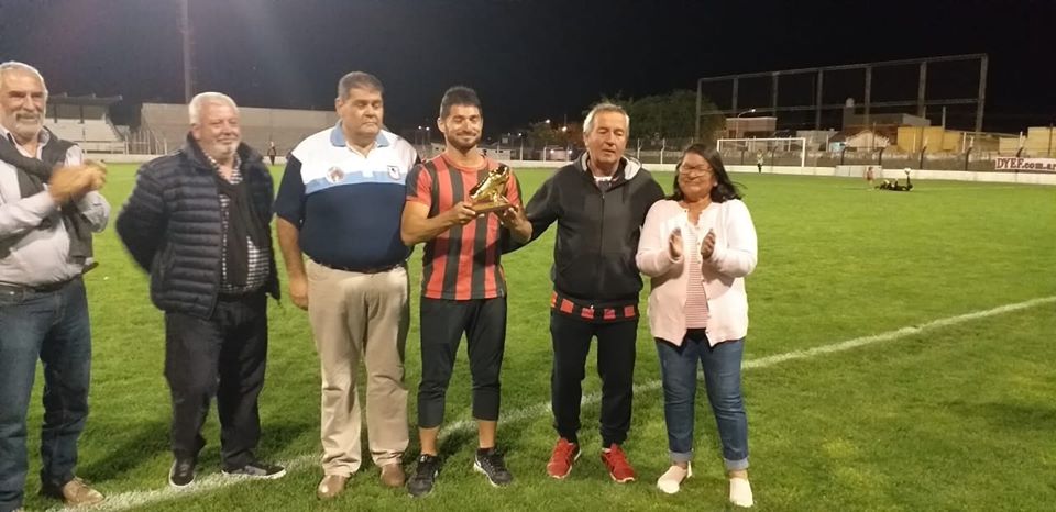 Luciano Silva, el gran goleador de Juarense que tiene la Unión Regional Deportiva, recibió de manos del presidente Miguel Cenoz, el secretario Marcelo Ardua y el tesorero Daniel Manchón, el botín de oro por sus 165 goles en primera división.
