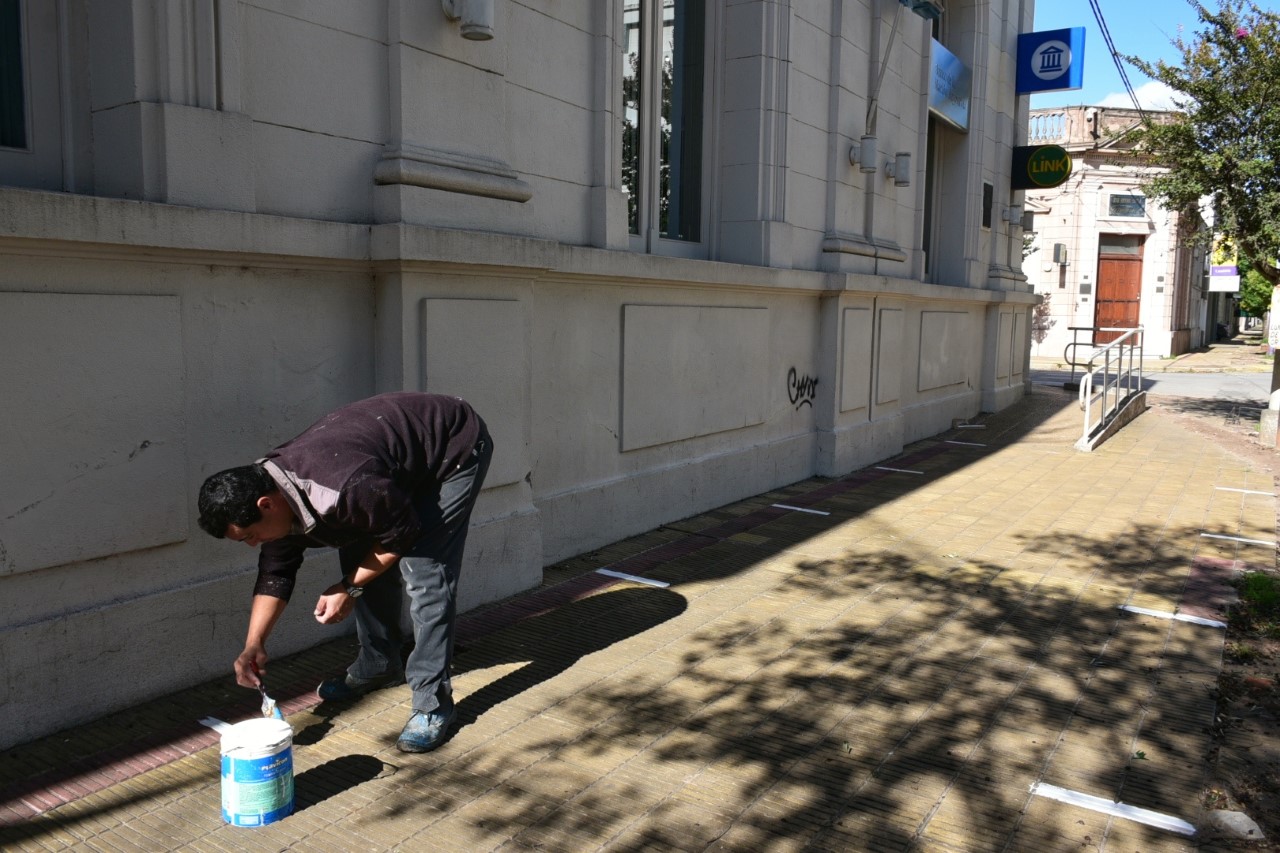 La Municipalidad de Ayacucho incorporó nuevas medidas de prevención para evitar la propagación del coronavirus, y llevó adelante la demarcación de líneas blancas sobre las veredas de las sucursales locales de los Bancos Provincia y Nación.
