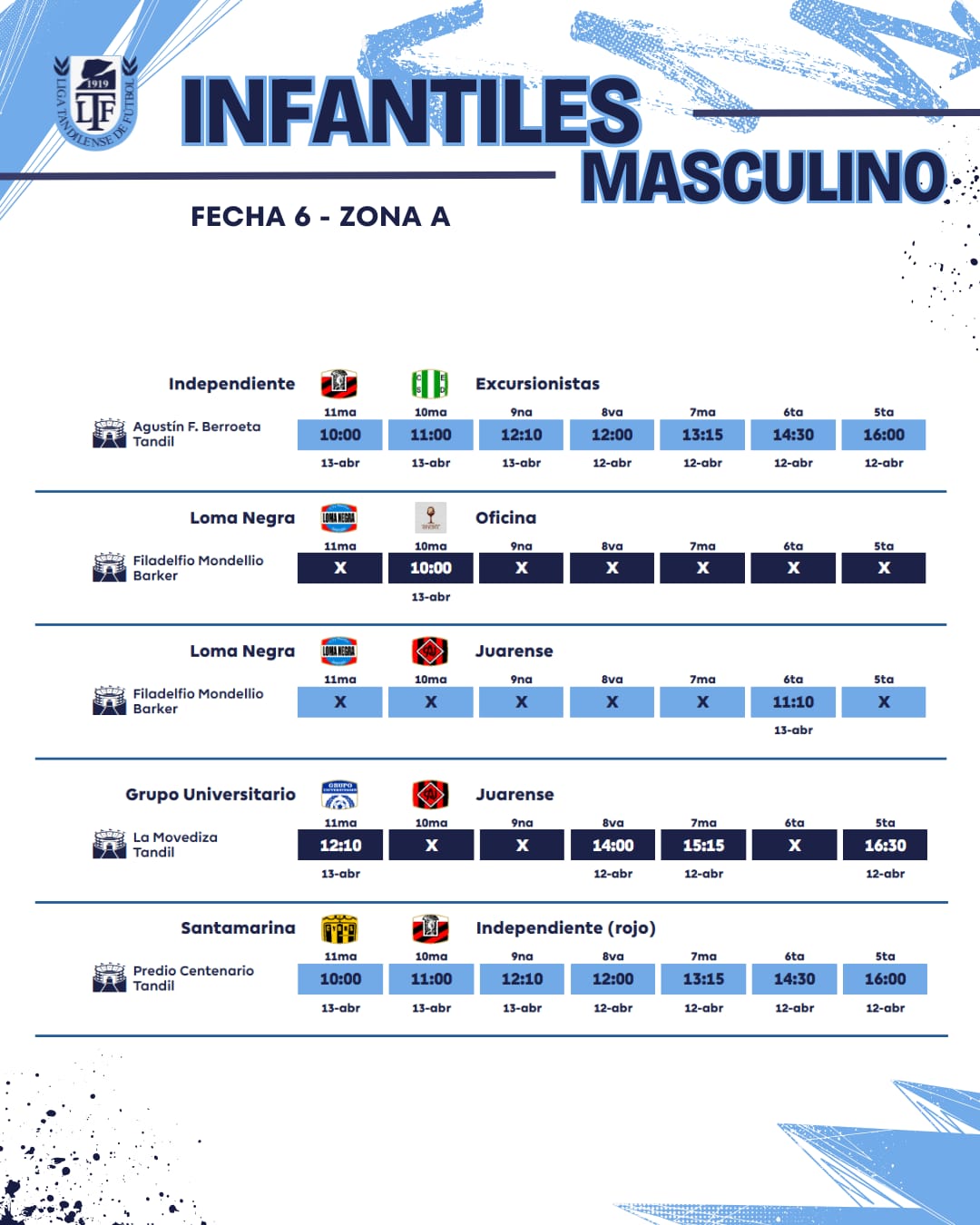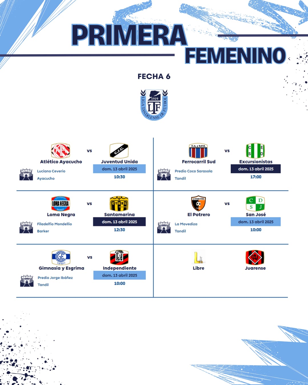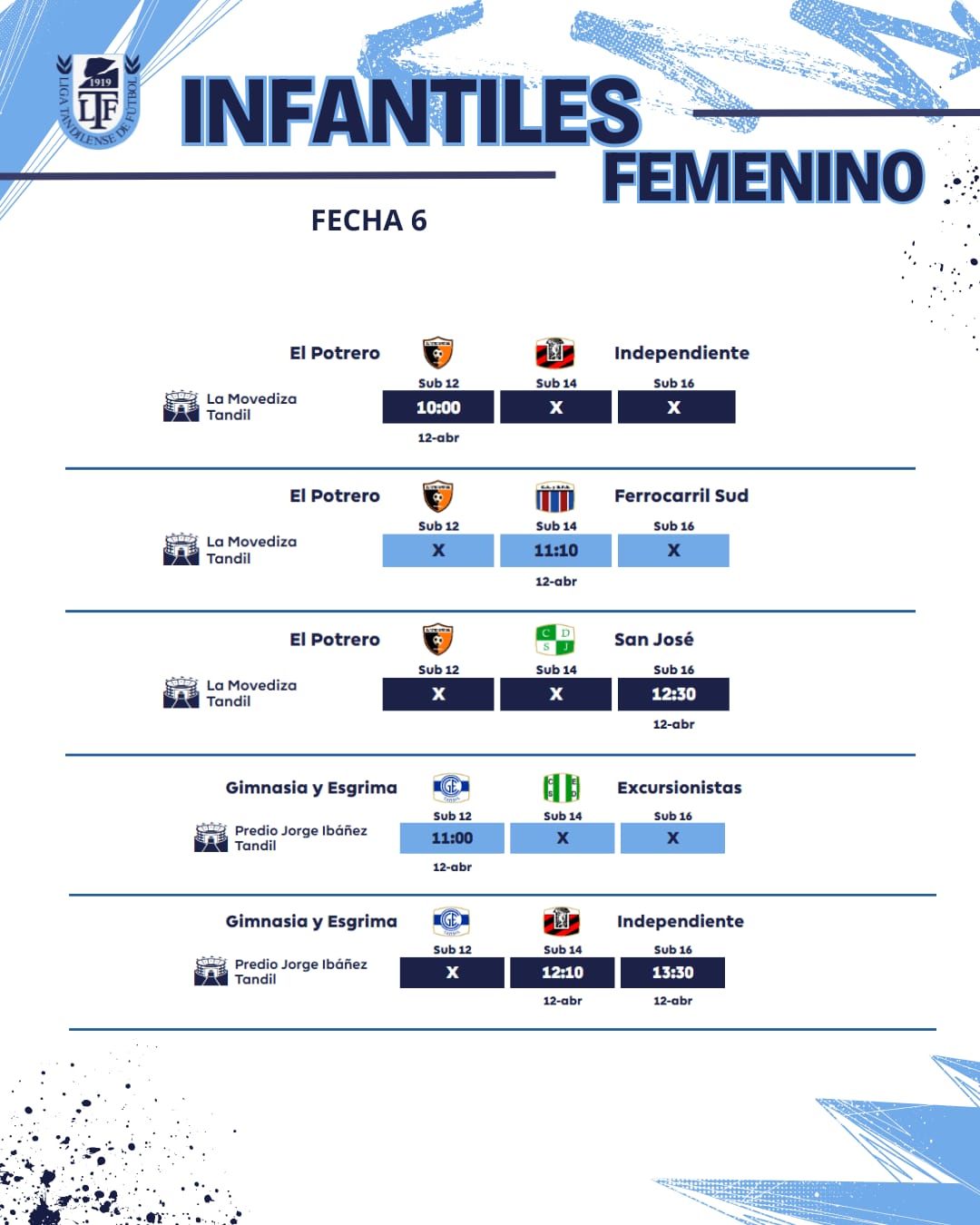 Así se jugará la sexta fecha en todas las categorías de la temporada 2025 de la Unión Regional Deportiva.
