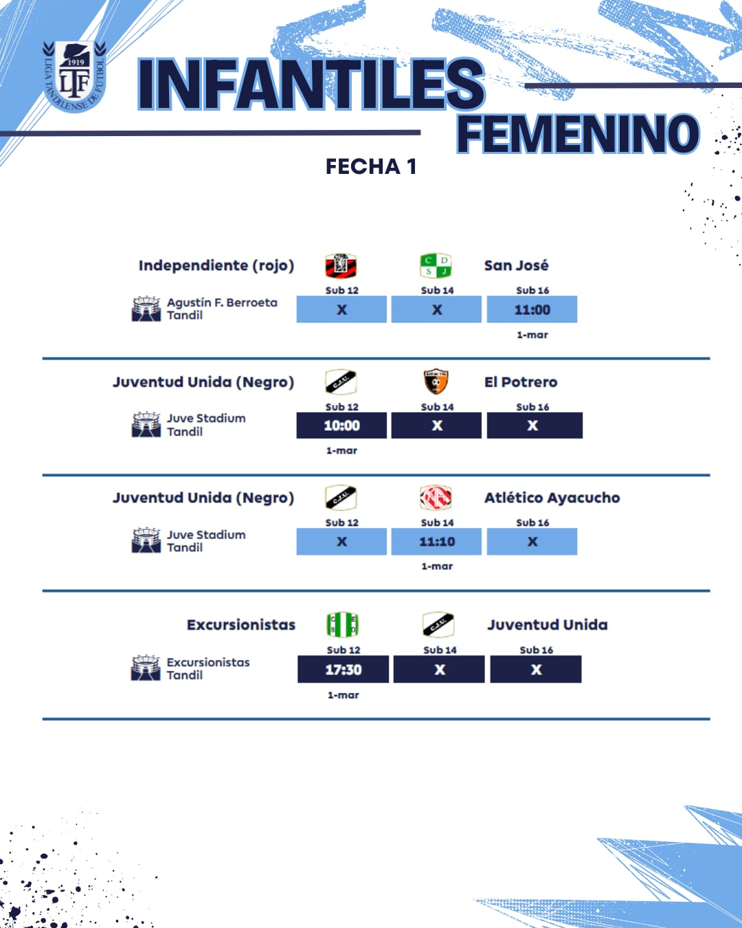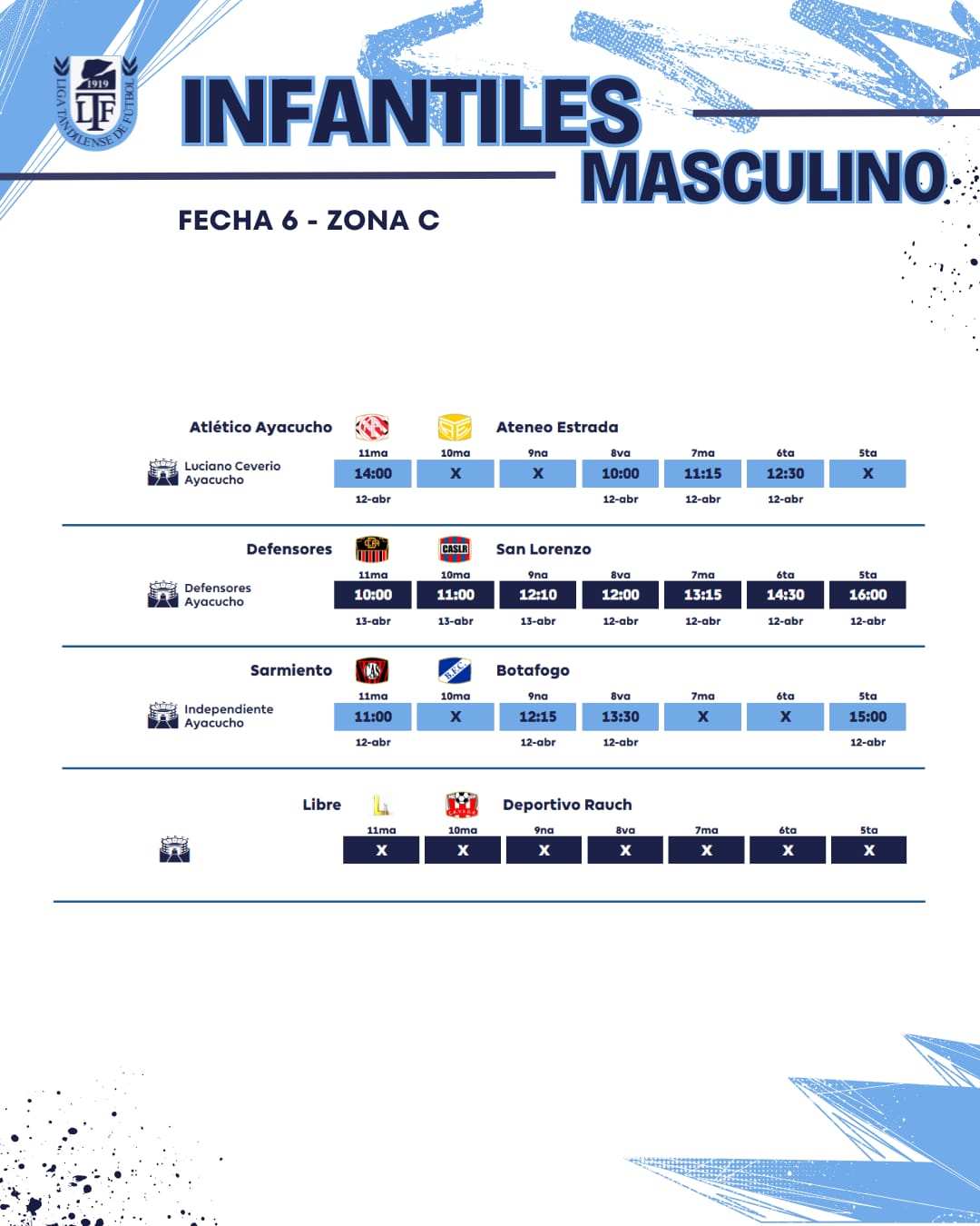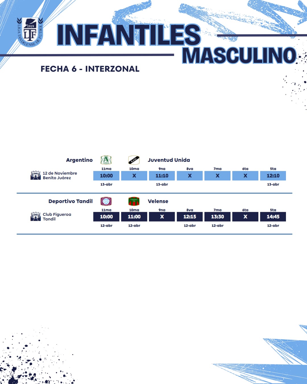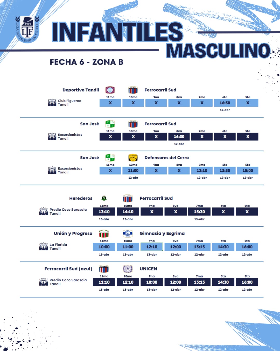 Así se jugará la sexta fecha en todas las categorías de la temporada 2025 de la Unión Regional Deportiva.