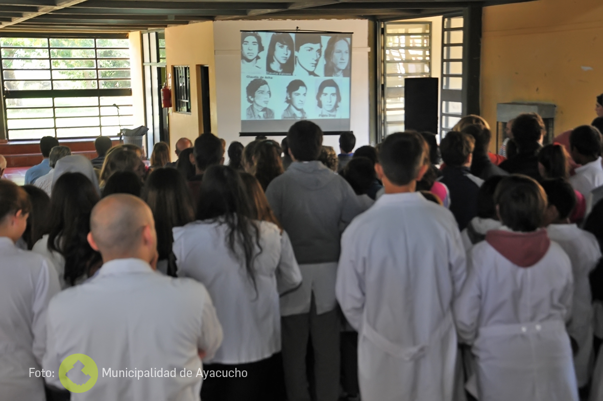 También hubo reflexiones por parte de los alumnos de 4º, 5º y 6º año del establecimiento mientras a su fin se proyectaba un video de la canción de la banda uruguaya La Vela Puerca y “Llenos de Magia”, interpretada por pibes que concurrieron al programa “Jóvenes y Memoria”, que en Ayacucho puntualmente ha tenido una importante adhesión.