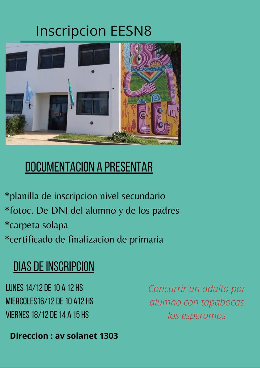 Abre la inscripción la EES Nro 8 – Del 14 al 18 de diciembre frente a Bomberos 10 diciembre, 2020 Pablo Tusq destacados, Locales, locales DIA 0 X