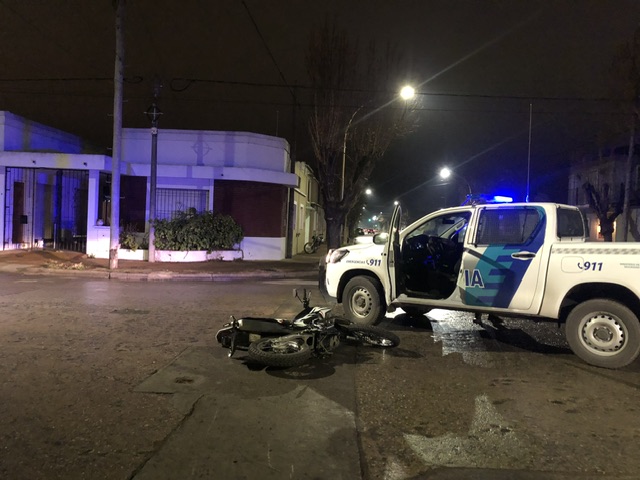 Este viernes por la noche se produjo un accidente en la esquina de Poderoso y Sarmiento donde se vieron involucradas dls motocicletas. Como consecuencia del mismo, un joven que conducía una de las motos, fue trasladado al Hospital dado que presentaba golpes diversos pero que no revestían gravedad.