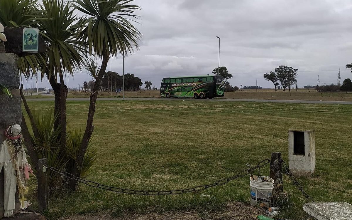 Accionar desagradable: un micro foráneo desecha su baño químico en plena rotonda de rutas 29 y 50