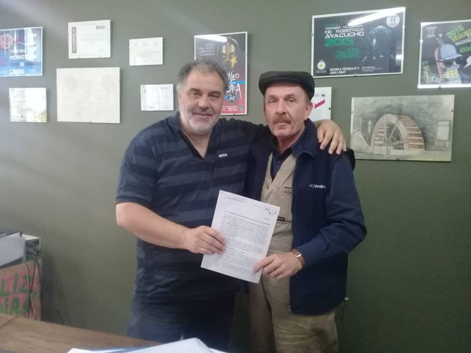 Días pasados se hizo entrega formalmente del Acuerdo realizado hace un tiempo con el INTI para el intercambio de recursos, capacitación y acceso a equipamiento por parte de esta institución. Así mismo con la presencia del Ing. Shaun Macmahon se estuvieron proyectando las capacitaciones que nuestros alumnos realizarán en INTI MECANICA del Parque Tecnológico Miguelete (San Martín).