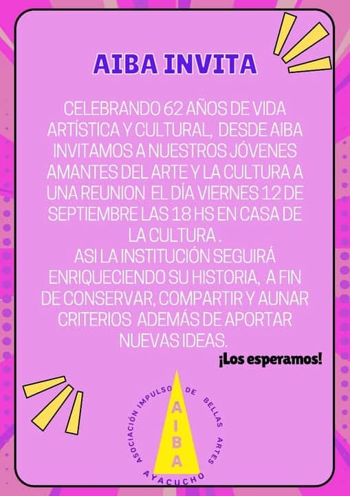 Por eso, invitamos a todos los jóvenes amantes del arte y la cultura a una reunión este viernes 12 de Septiembre, a las 18 hs, en la Casa de la Cultura.