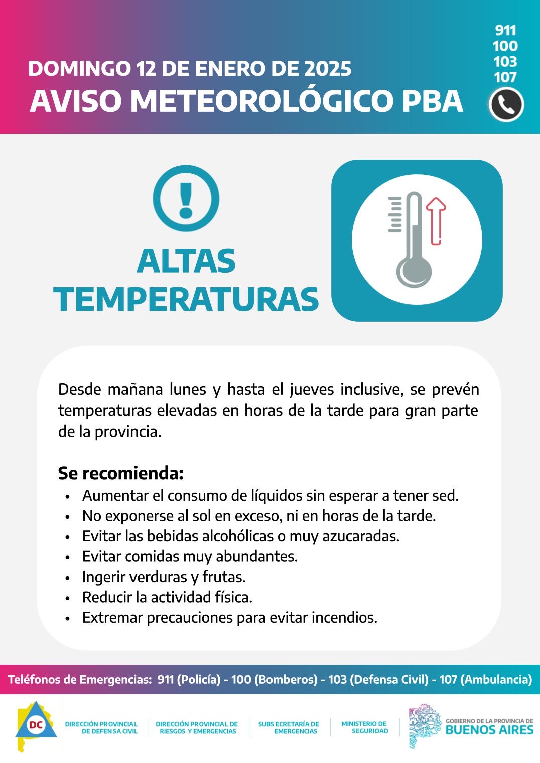 Aquí brindan una serie de recomendaciones que van desde hidratarse muy bien, evitar exponerse al sol en horario de la tarde como también reducir la actividad física entre otros puntos a tener en cuenta.