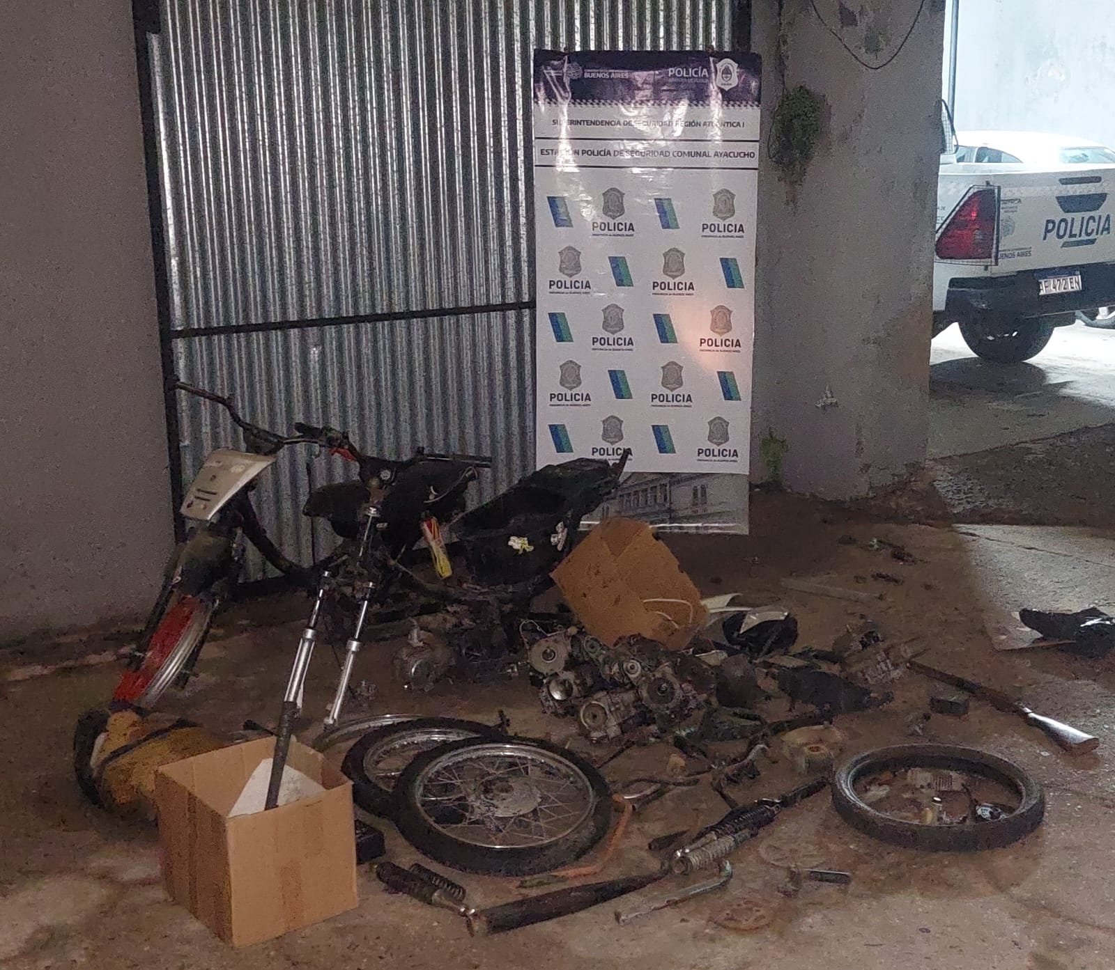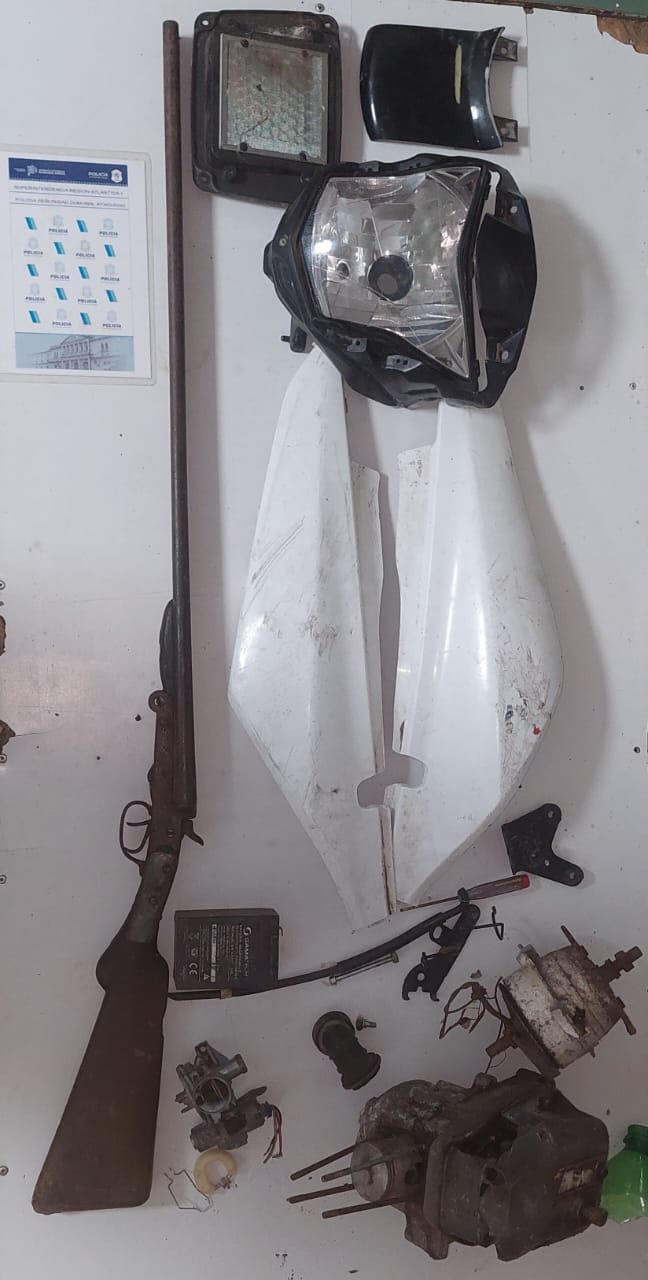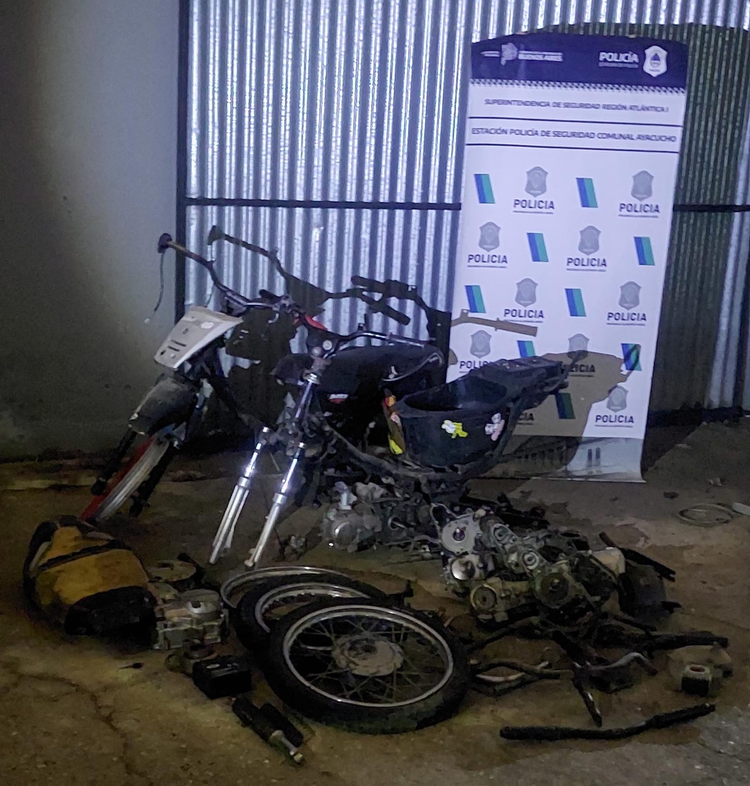 Fecha 11 del corriente, Personal de esta Estación de Policía de Seguridad Comunal Ayacucho, procedió a realizar allanamientos en tres domicilios de esta localidad, por así haberlo dispuesto el Juzgado de Garantías del Joven Nro. 01 del Depto. Judicial de Dolores a cargo de la Dra. Hachmann, arrojando todos estos resultado POSITIVOS, por varios hechos cometidos días anteriores en esta localidad, recuperándose así autopartes varias de motovehículos, como así también una escopeta calibre 16 de doble caño.