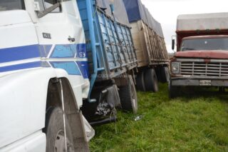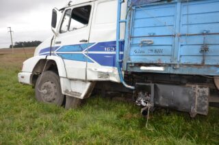 Este lunes alrededor del mediodía se produjo el choque entre dos camiones en Ruta 29, en dirección a Solanet. Ayacuchoaldia.com.ar estuvo en el lugar del siniestro, a unos 20 kilómetros de la rotonda de Ruta 29 y 50, pasando la bajada de Cerrillos. El accidente se originó, de acuerdo a testimonios de los propios camioneros, cuando uno intentó adelantarse al otro y su conductor perdió el control, impactando con la el lateral de uno de los transportes. Como consecuencia del golpe que fue justo a la altura del tanque de combustible, el mismo se dañó por lo que fueron convocados los Bomberos Voluntarios de Ayacucho.