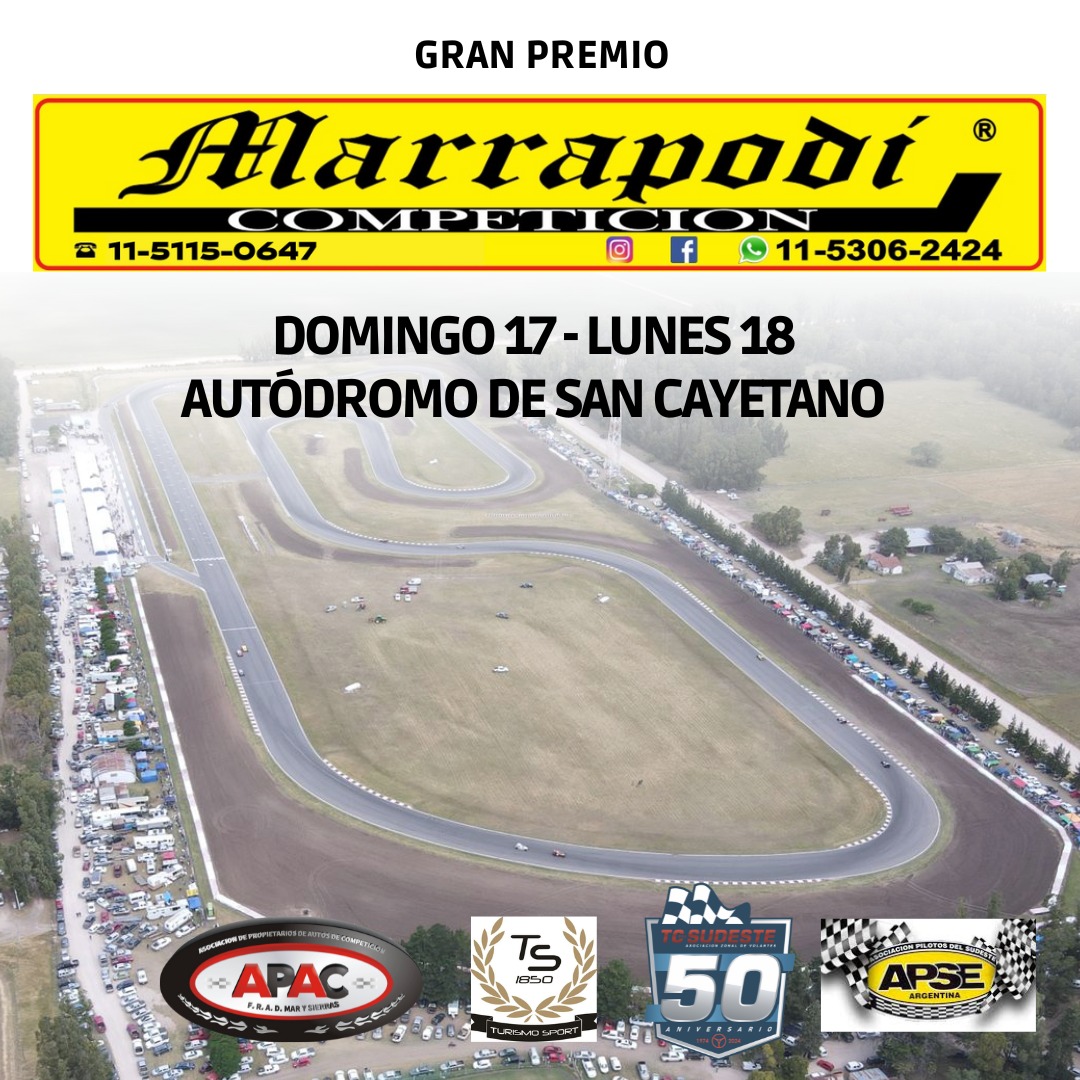 Luego de intensa reunión de la COPAM (Comisión Provincial de Automovilismo y Motociclismo), se confirmó para este domingo y lunes (feriado) el mega espectáculo del “Zonal Mar y Sierras y del Sudeste” Gran Premio Marrapodi Competición en el circuito Parque del Club Independiente de San Cayetano, retornando las potentes categorías al sudeste bonaerense en la cita del reencuentro.