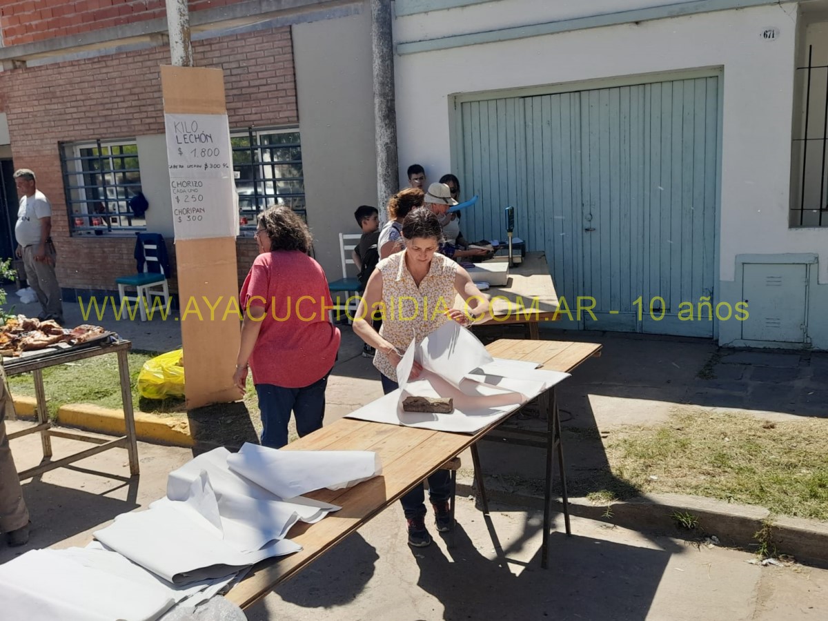 La venta se concretó en el frente de las instalaciones del Centro de Día, con lechón al peso y chorizos al peso, en adhesión a la 48° Fiesta Nacional del Ternero y Día de la Yerra. Por suerte una vez más la gente acompañó a la institución, y se vendió todo.