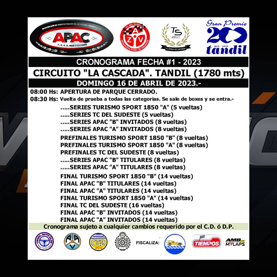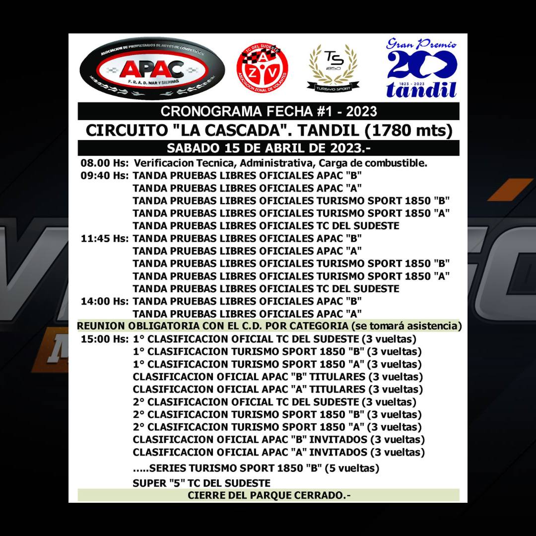 Este sábado 15 y domingo 16 de Abril, la categoría APAC, junto al TC del Sudeste y al Turismo Sport 1850 ponen primera en el circuito ‘La Cascada’ del Tandil Auto Club. UN enorme parque de autos con nuevos diseños, ya está en el escenario de la Villa Don Bosco.