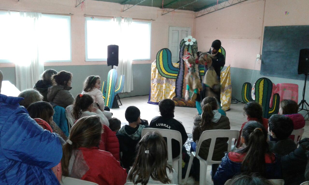 Movieron las actividades organizadas por la Dirección de Cultura para estas Vacaciones de Invierno y una de ellas fue este Domingo por la tarde en la sede del Barrio Martín Fierro, en donde se presentó “Canapé de Polenta” con lo mejor en títeres para los más chicos.