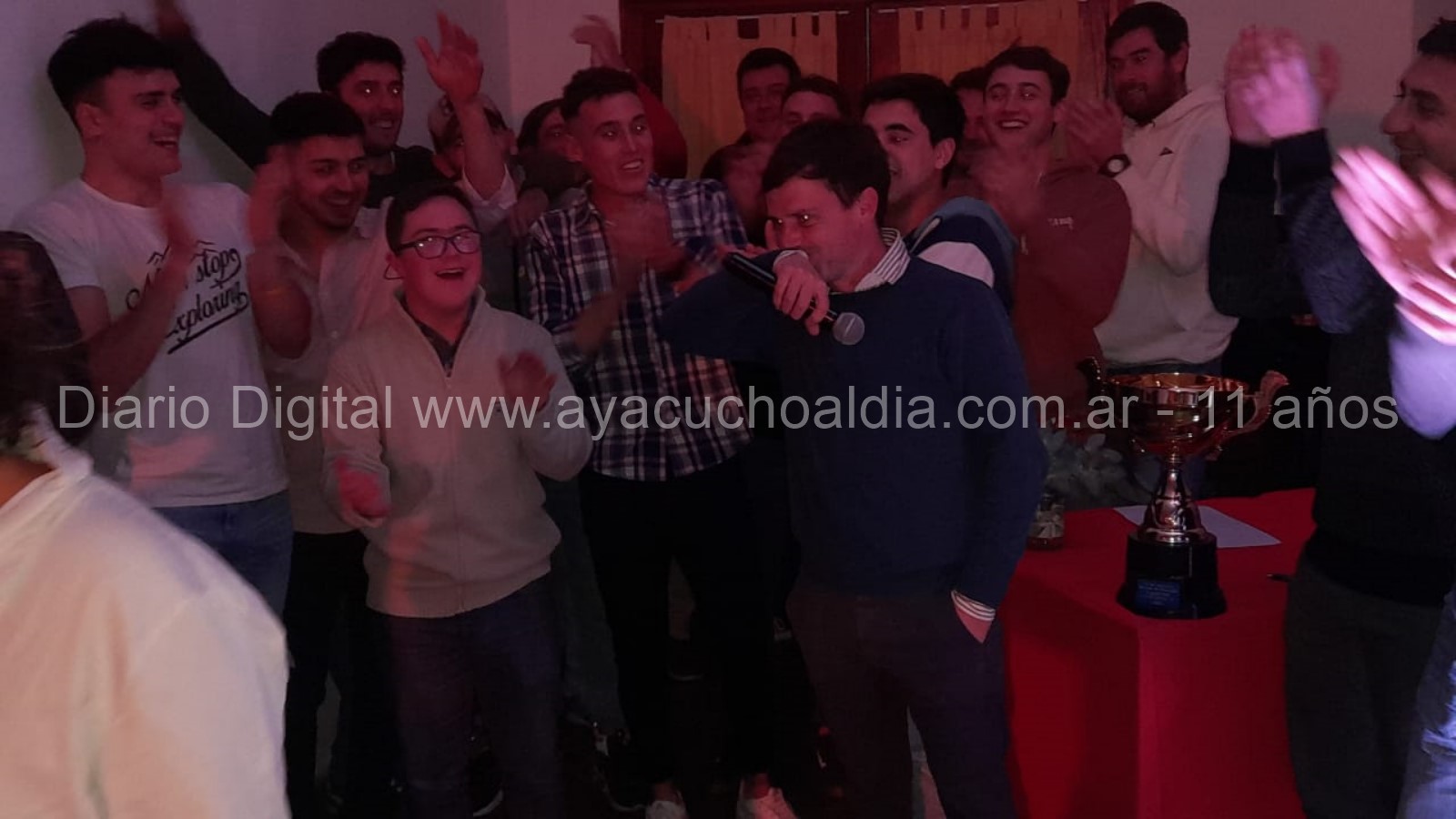 Este sábado 16 de Julio desde las 21-30 en sus instalaciones de calle Mitre, el Club Atlético Ayacucho celebró sus 104 años de trayectoria en la comunidad, y el reciente título de 1er división de la U.R.D con el cuerpo técnico conducido por Lolo Newton. Algo más de 200 personas disfrutaron de un muy rico menú realizado por Ramiro Zubiaurre, excelente atención de las mozas, y el siempre atractivo show musical de «Mala Praxis».