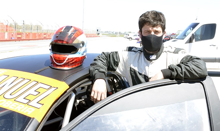 Con un buzo blanco y negro estuvo el preparador de Olavarría, Juan José Cassou, que giró a la mañana en el Ford Ka de tandilense Lucas Bayala de la Clase 2 del Turismo Pista.