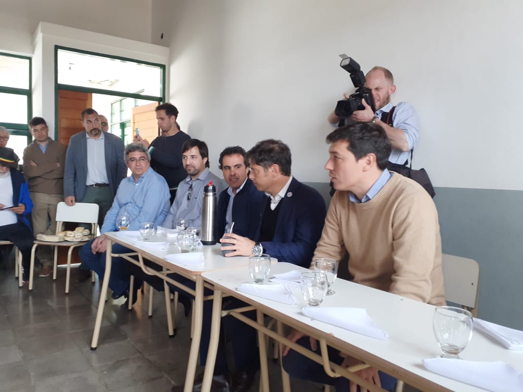 Kicillof estuvo acompañado por Nicolás Kreplak, Pablo Urquiza y Gervasio Bozzano. La comitiva recorrió las obras que se llevan adelante en el Centro de Formación Profesional Nº401 «Trayecto de Formación Agraria». A los inspectores antes mencionados, se sumaron la inspectora Jefa Distrital Laura Luquez, autoridades municipales, concejales, consejeros, docentes y miembros de la comunidad.