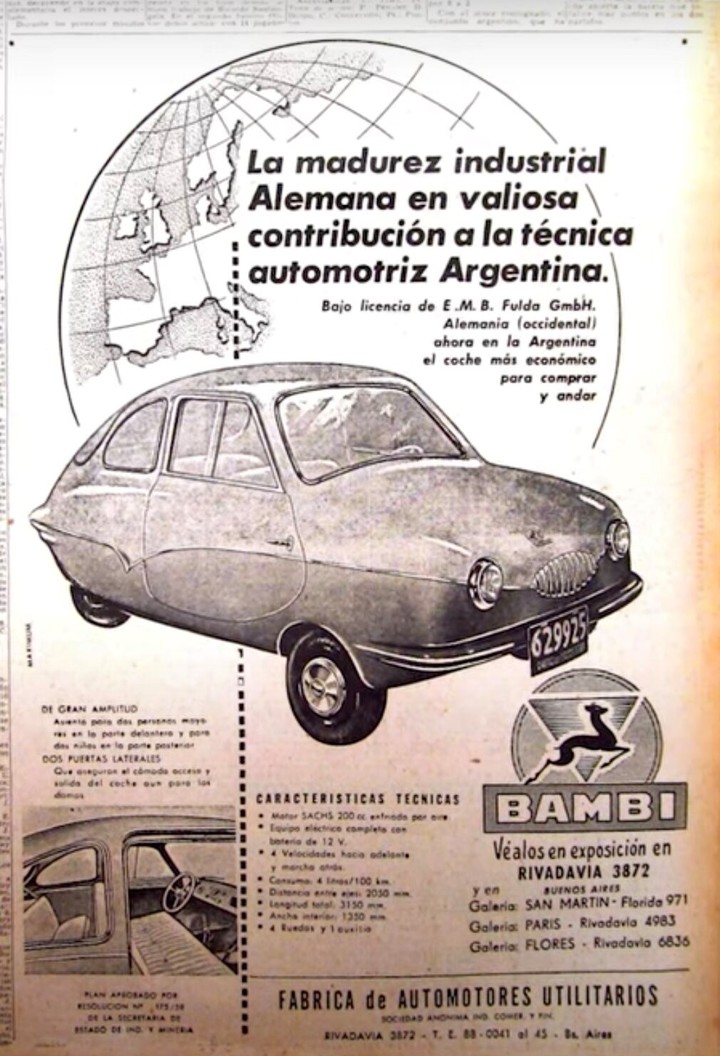 Las tratativas para obtener la licencia comenzaron a fines de 1958 y, una vez obtenida ésta, se constituyó la sociedad Fábrica de Automóviles Utilitarios, con sede en Centenera 1851 de la Capital Federal, y se levantó la línea de montaje en la que se construiría el coche, lo mismo que la producción de las matrices para hacer las carrocerías de plástico. El 12 de mayo de 1960 salió de la línea de montaje el primer Bambi, como había sido bautizado el coche en la Argentina, considerando que el nombre Fuldamobil no sería fácilmente aceptado. El auto era fácilmente identificable por su forma de gota de agua, pero en una carrocería cerrada, y no llena de plexiglás como otros coches de la época, lo que lo hacía bastante más auto que sus competidores más cercanos. Desgraciadamente, a un precio de 169.000 pesos el coche resultaba 20.000 pesos más caro que el Heinkel, y 80.000 más que el Messerschmitt.