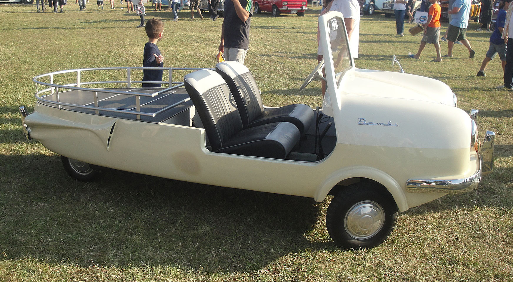 Como parangón con el amplio lugar interior, las puertas, una de cada lado, descubren un espacio que comprende holgadamente el asiento delantero, haciendo que la operación de entrar y salir del bambi no sea una aventura riesgosa. El corte de la abertura de las puertas no presenta salientes ni rebordes peligrosos para la integridad física o la ropa de los probables ocupantes. El pequeño volante de tres rayos, tal vez la pieza de carrocería mejor terminada, es liviano y muy directo los controles manuales del tablero son de fácil acceso, y el único dial (velocímetro y cuentakilómetros) queda centrado por dos de los tres rayos del volante cuando el automóvil marcha en línea recta. No tiene “guiñada” de fábrica, siendo conveniente colocarla en alguna casa de accesorios.