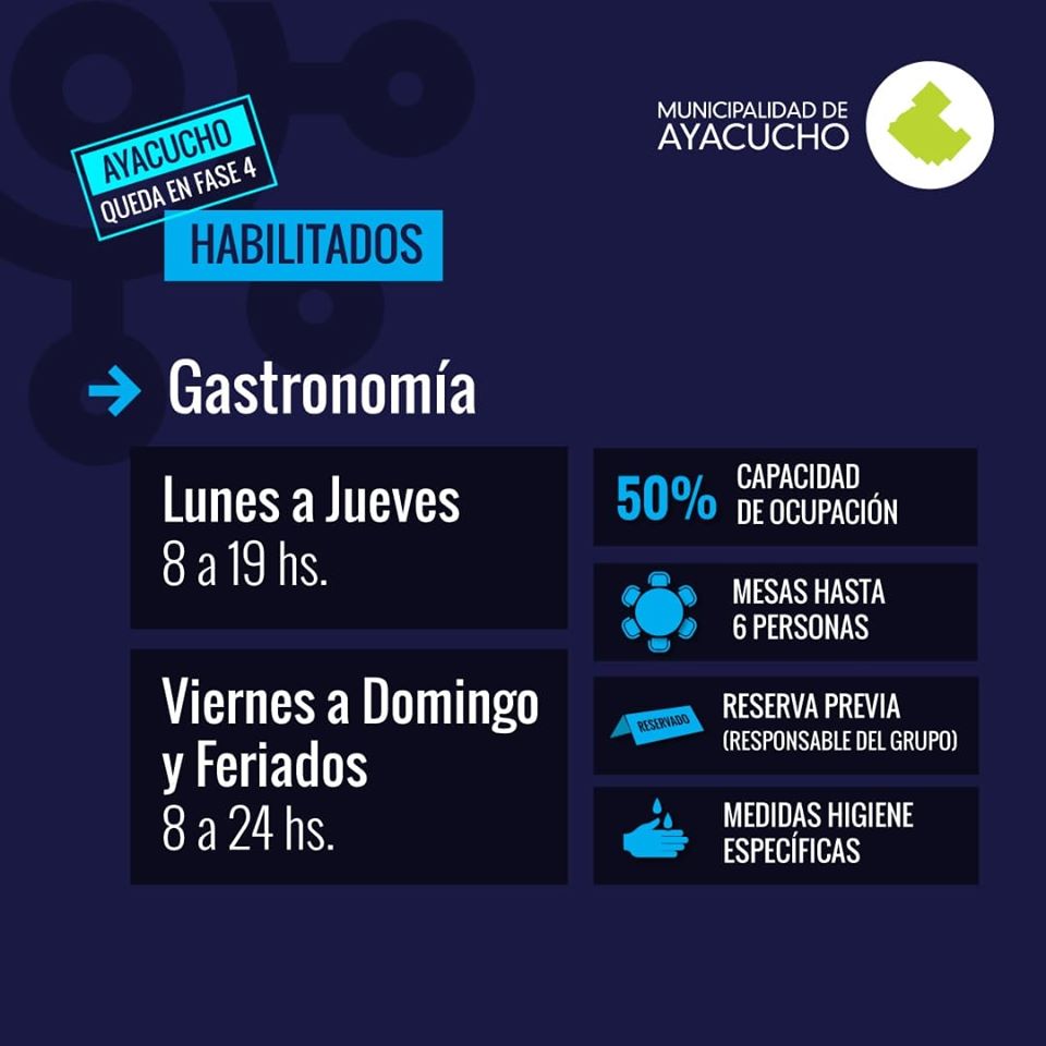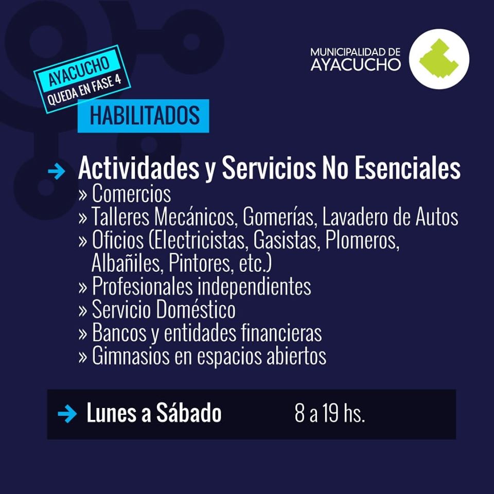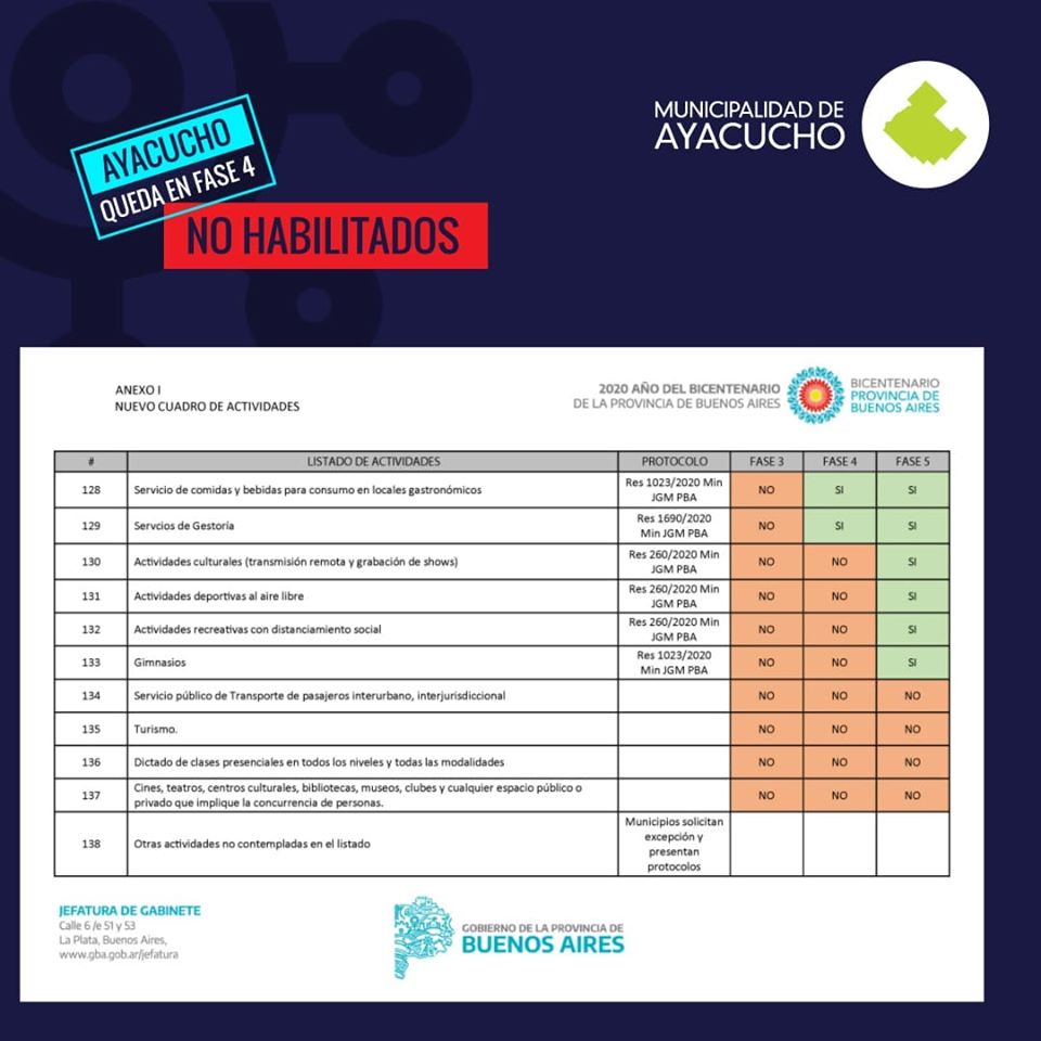 A continuación en las gráficas adjuntas compartimos todas las actividades habilitadas (y cuáles no) con sus respectivos horarios y detalles: