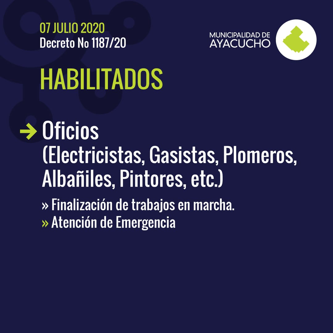Oficios: electricistas, gasistas, plomeros, albañiles, pintores, etc.: Para la finalización de trabajos en marcha como atención de emergencia.