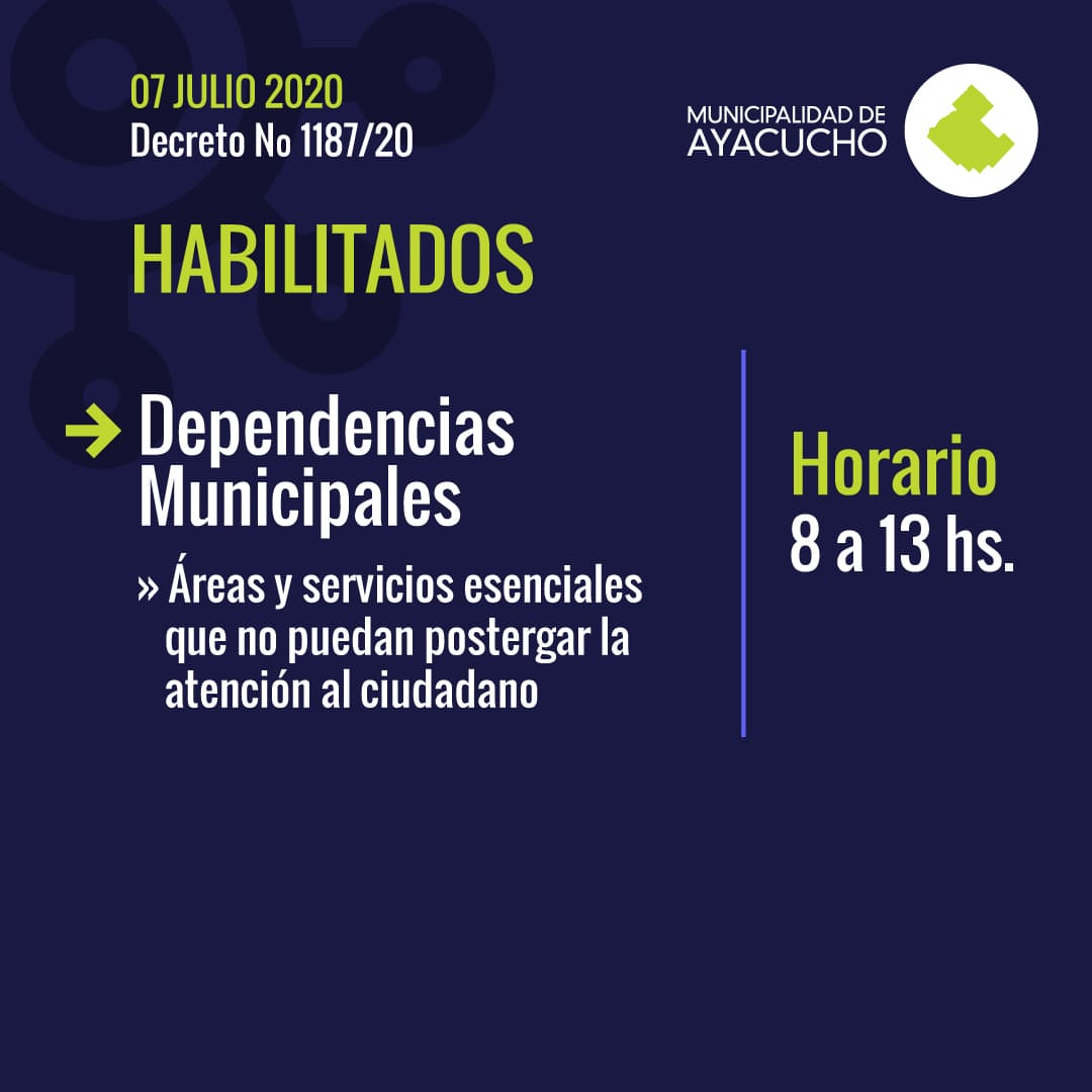 Dependencias municipales: Áreas y servicios esenciales que no puedan postergar la atención al ciudadano, de 8 a 13 horas.