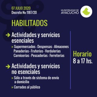 En la tarde de este martes 7 y tras los anuncios de retroceso en las actividades en nuestra ciudad a raíz de los casos de Coronavirus confirmados, el Municipio publicó una serie de imágenes donde detallan qué rubros podrán funcionar, cuáles no y los horarios de los mismos que a continuación detallamos.