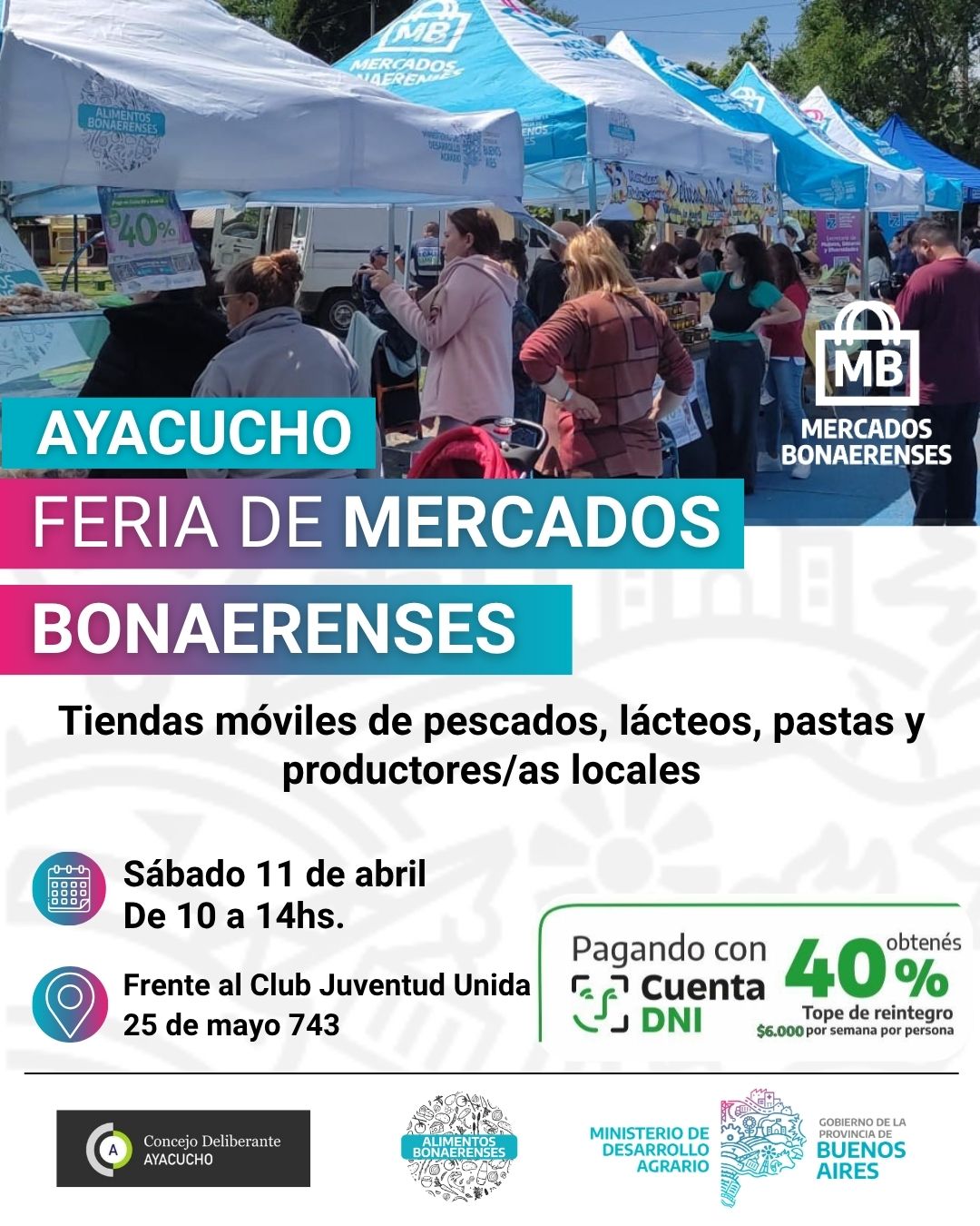 Ayacucho recibirá este sábado 11 de Abril la Feria de Mercados Bonaerenses, una tienda móvil pensada en los consumidores que permitirá adquirir productos de los más variados a precios convenientes.