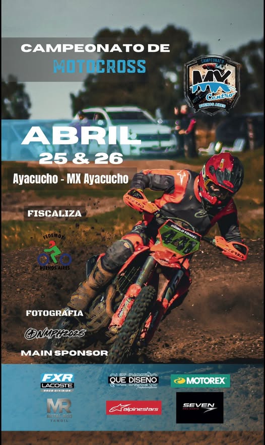 Ayacucho vivirá la 1era fecha del Campeonato de Motocross MX – Sábado 25 y domingo 26 de Abril 2 abril, 2026 Pablo Tusq Deportes, deportes DIA, destacados 0 SE VIENE LA PRIMER FECHA DEL CAMPEONATO DE MOTOCROSS MX DEL CENTRO 25 y 26 de abril Circuito del Monte de Orfila… X