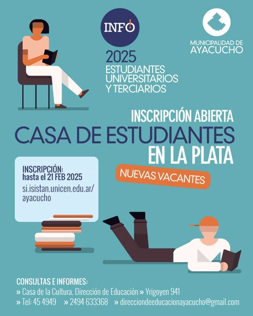 La Municipalidad de Ayacucho a través de la Secretaría de Educación reabre la inscripción 2025 para la Casa de Estudiantes en la localidad de La Plata.