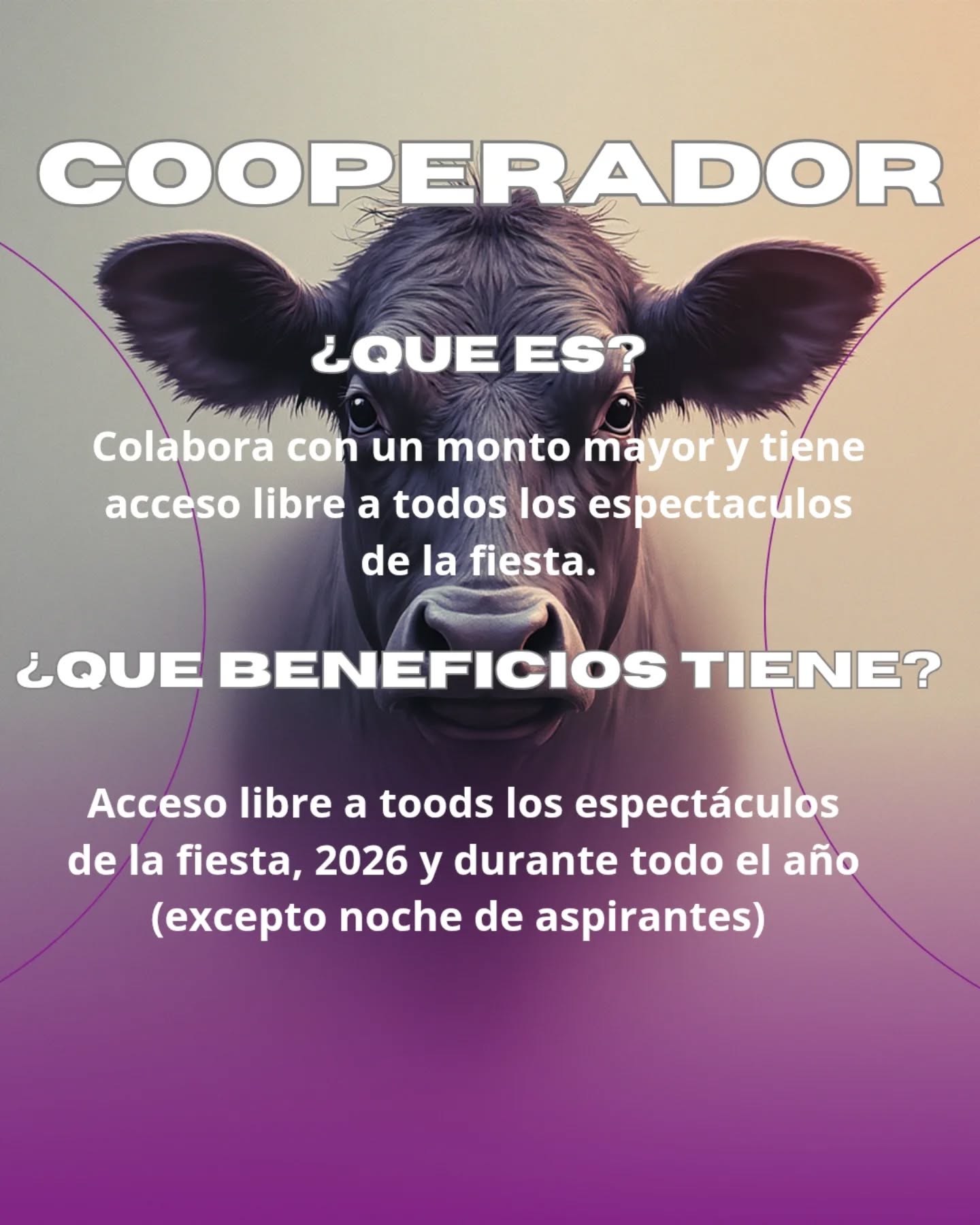 *Categoría Cooperador: Colaborás con un monto mayor y disfrutás de acceso libre a todos los espectáculos de la fiesta 2026 y durante todo el año. (Excepto noche de aspirantes)