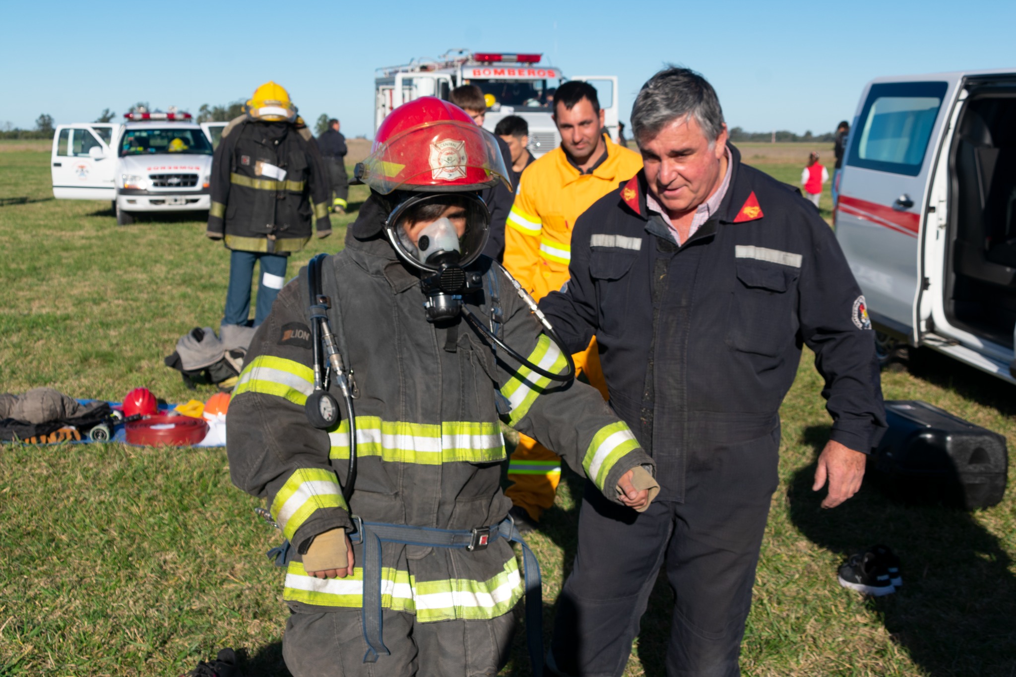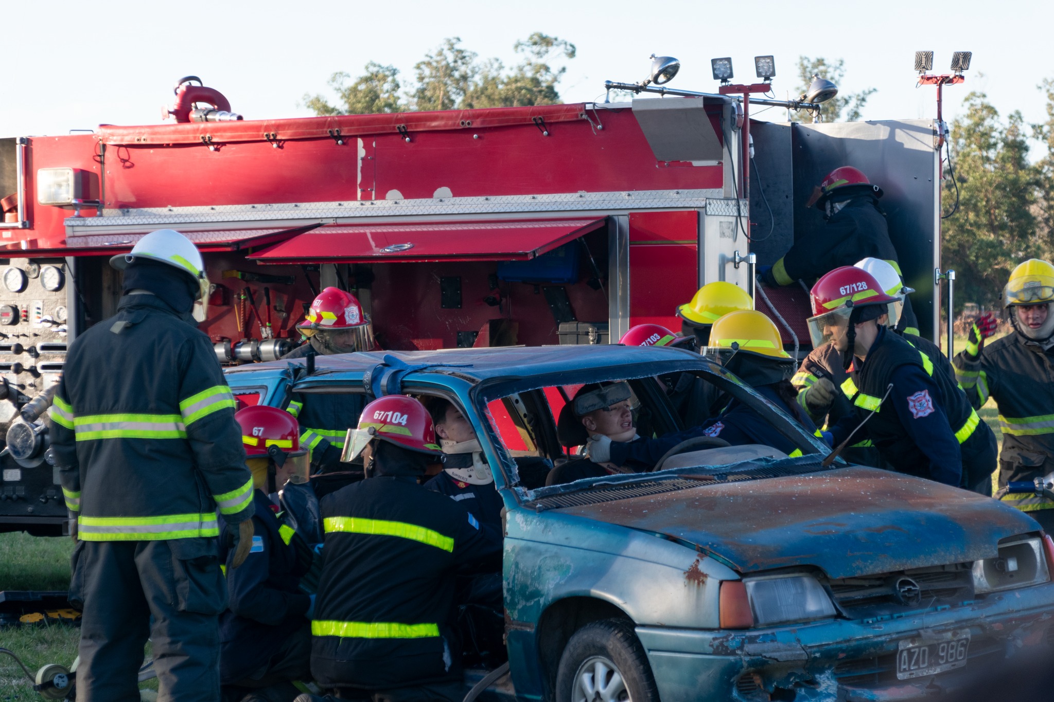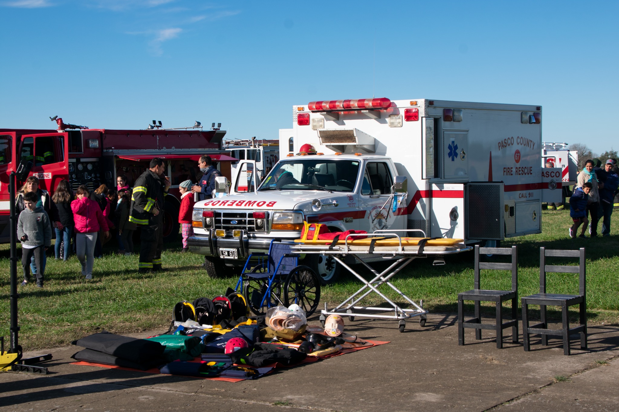 Este domingo desde las 13:30 hs en el Aero Club de Ayacucho: se concretó la anunciada Exhibición de materiales utilizados en Rescate y Salvamento, Abastecimiento, paseo y recreación para niñas y niños, muestra de unidades, herramientas y equipos. Exhibición de Trauma y simulacro de accidente vehicular, para culminar con la Caravana final de unidades.