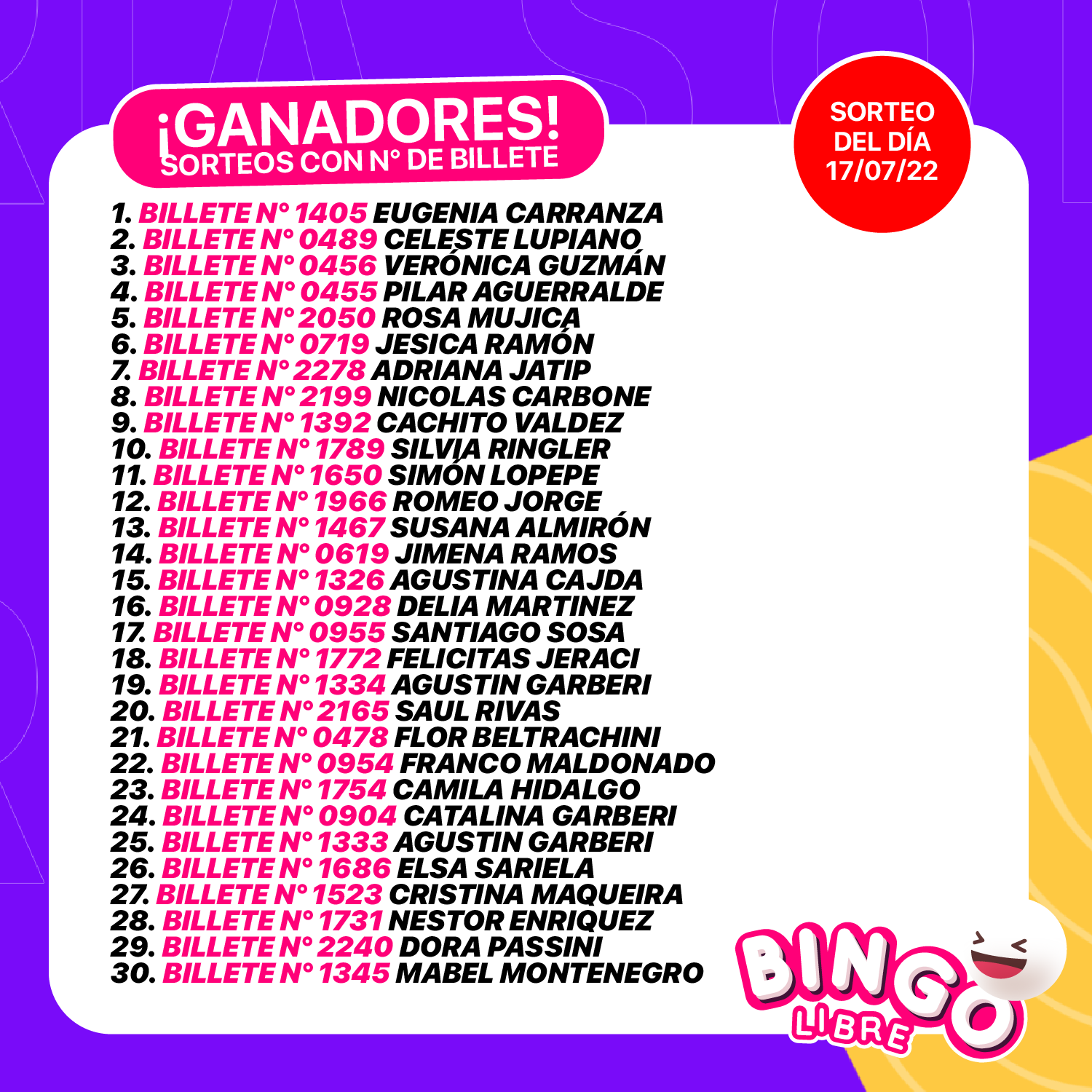 El pasado domingo se concretó un nuevo Bingo Libre, en este caso a beneficio de; BOMBEROS VOLUNTARIOS DE AYACUCHO y ESC. EDUCACIÓN ESTÉTICA «MAFALDA», resultando ganadores;