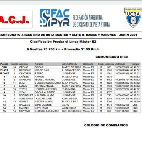 OSCAR ORONO – ¡CAMPEON ARGENTINO MASTER E2¡ MAR Y SIERRAS