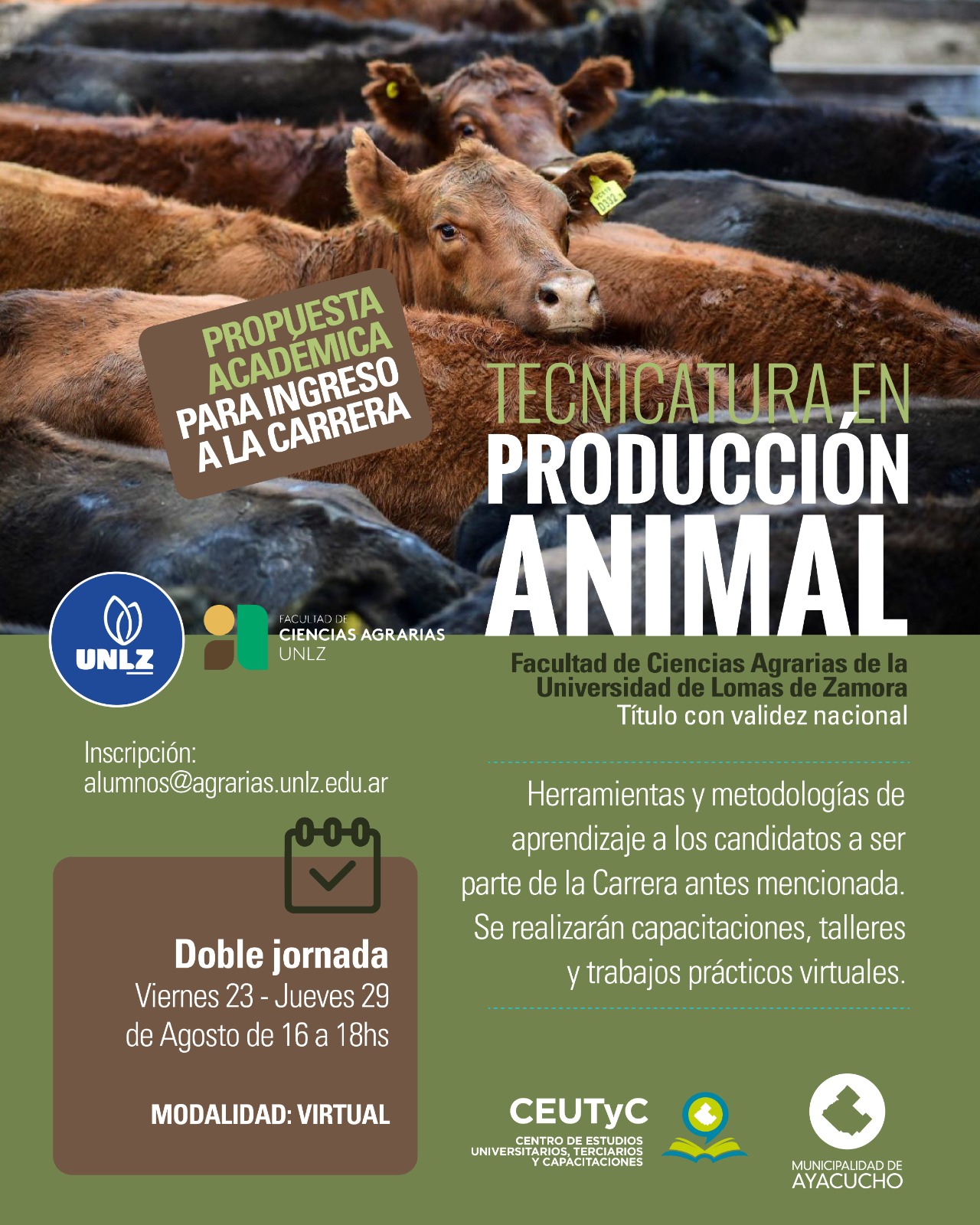 Se abre la inscripción a una doble jornada académica, que constará de encuentros virtuales para aplicar herramientas y metodologías de aprendizaje a los candidatos a ser parte de la Tecnicatura Universitaria en Producción Animal.
