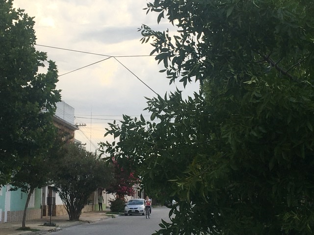 Según pudimos averiguar se tratarían de cables del servicio de televisión. Este inconveniente que se da con un viento que lejos está de ser fuerte, completa de idea y sustenta el reclamo de un plan integral de poda en toda la ciudad.